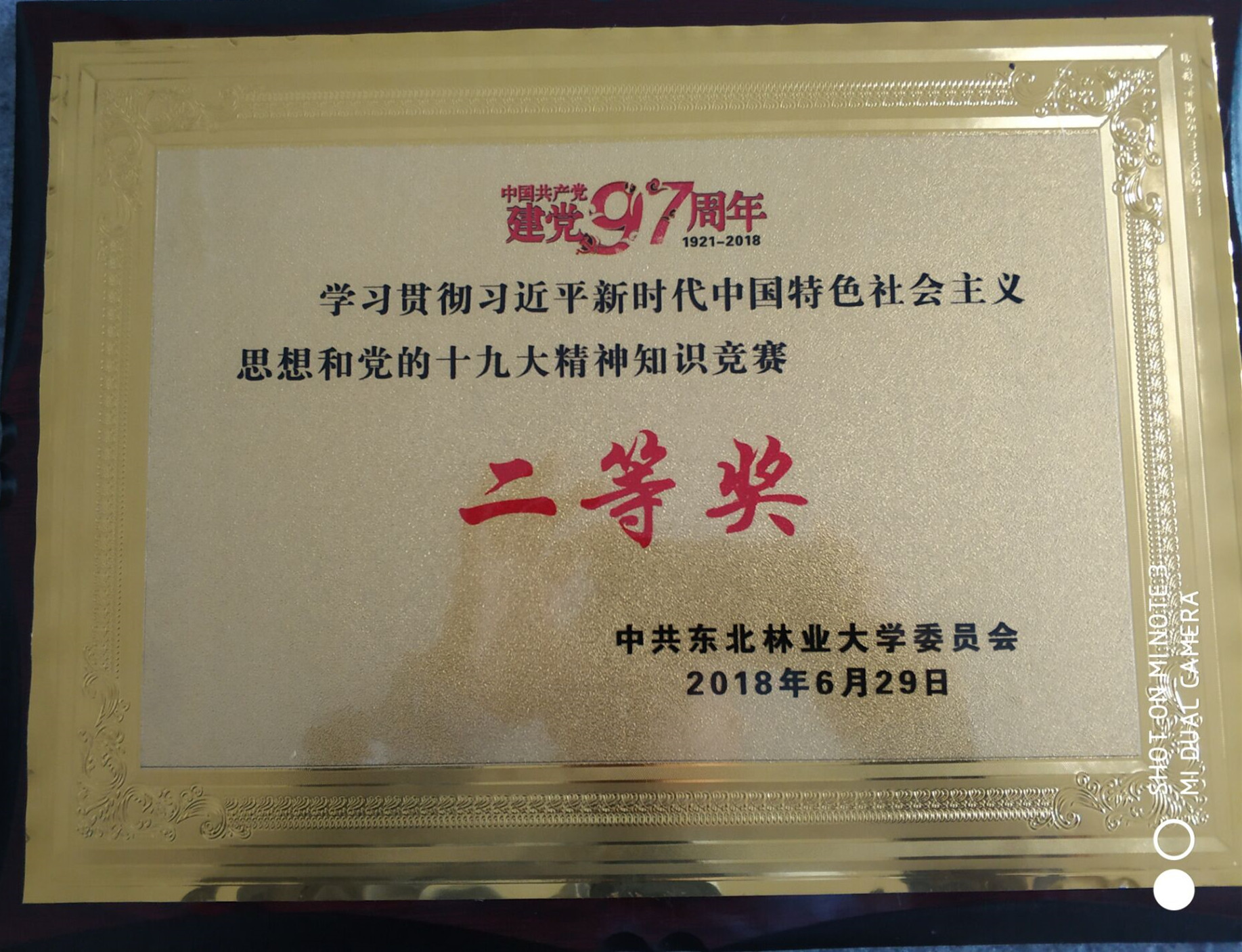 6月29日,东北林业大学“喜迎建党97周年,学习贯彻习近平新时代中国特色社会主义思想和党的十九大精神知识竞赛”总决赛在大学生活动中心成功举行。信息学院参赛代表队喜获本次大赛第二名的好成绩,同时,信息学院还获得“优秀组织奖”荣誉称号。