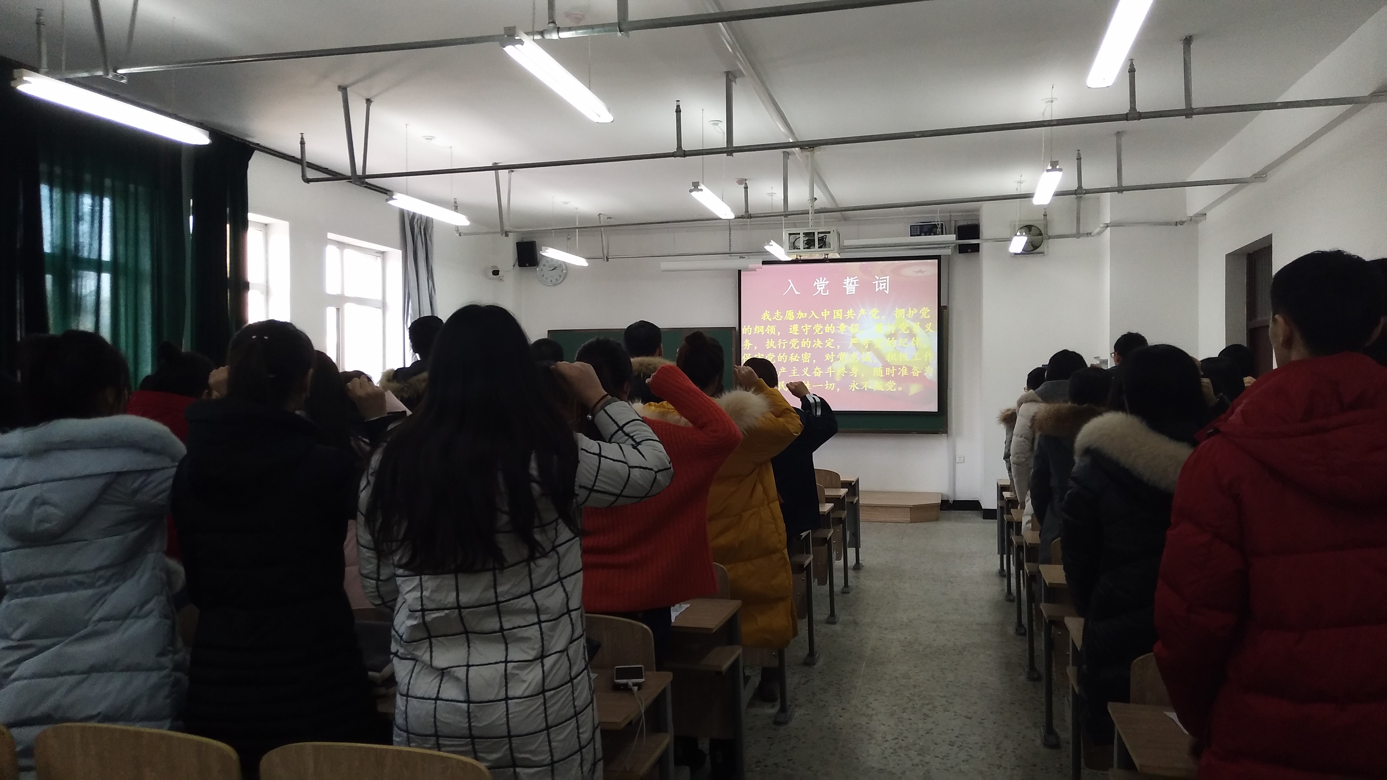 本次党课紧紧围绕十九大提出的关键词展开学习。在讲解之前,支部书记郑雪同志带领全体研究生党员重温了入党誓词。全体党员起立宣誓后,党课正式展开。郑雪同志着重带领大家回顾了十九大提出的关键词:一个初心•使命、两个阶段、三个“必须”、四个“伟大”、五个“更加自觉”、八个“明确”、十大“成就”等。