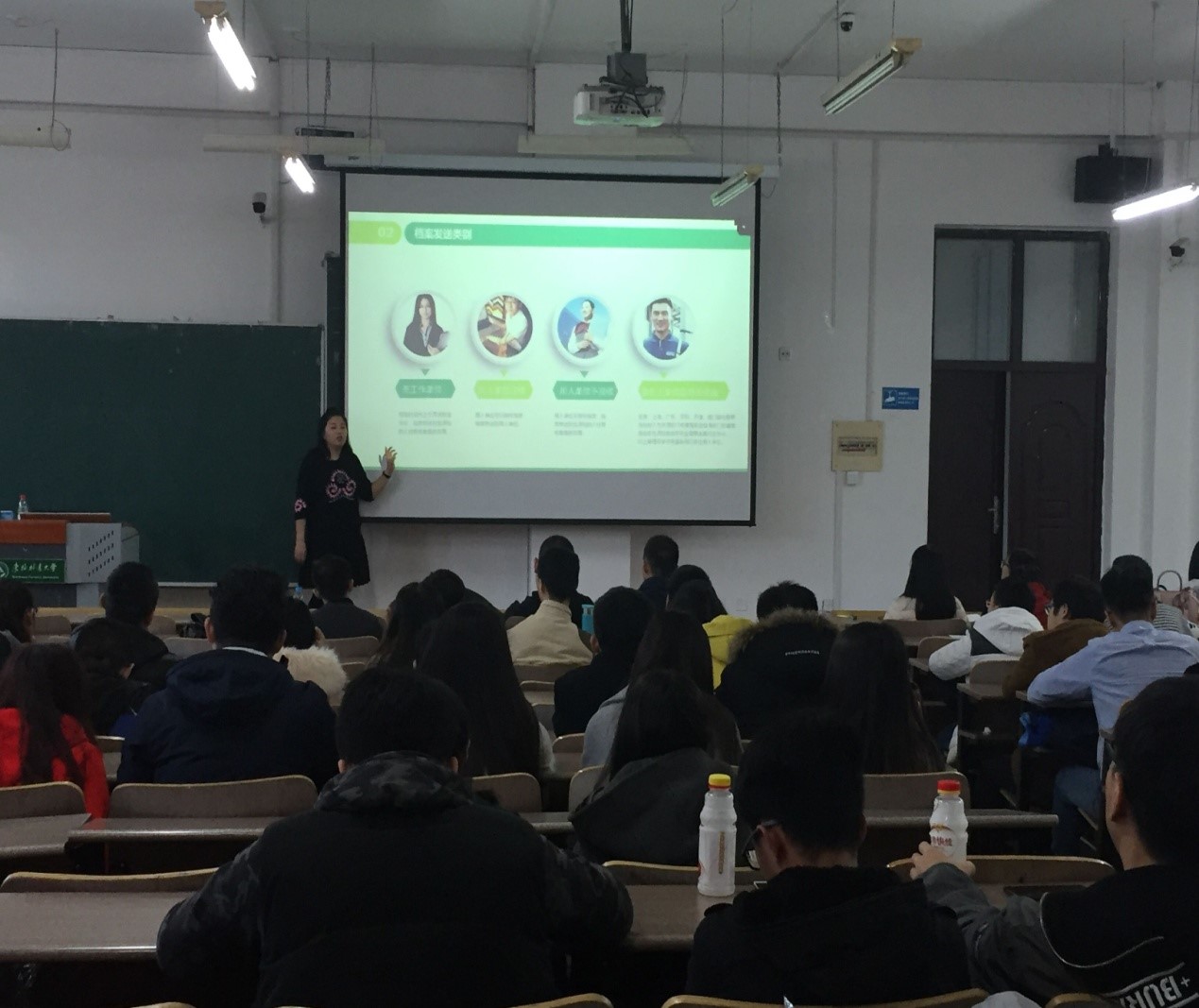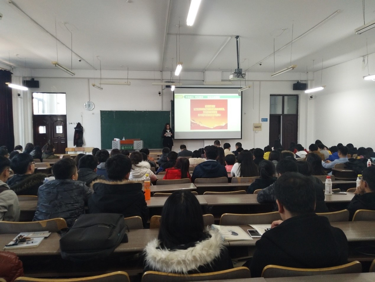 接下来,李婧坤老师从2017届毕业生去向、就业协议签订的注意事项、档案发送流程、研究生求职诚信和职业生涯规划教育等方面进行了讲述,要求学生树立职业生涯规划意识,尽早了解自己和未来工作世界,提高自身综合素质,评估、权衡多方面信息,进行决策并付诸行动,不断在求职、就业的过程中进行再评估和探索,不断修正自己的生涯规划。李老师讲解全面细致、生动形象,同学们学到了职业生涯规划和就业指导方面的相关知识。最后李老师给研究生提了四点建议:简历制作需尽早,提交材料要准确,贪黑熬夜要适度,求职就业早行动。最后号召全体研究生:迎难而上、开拓进取、与时俱进、攻坚克难,努力学习成才, 共同携手用火红的青春浇筑美丽的中国梦。