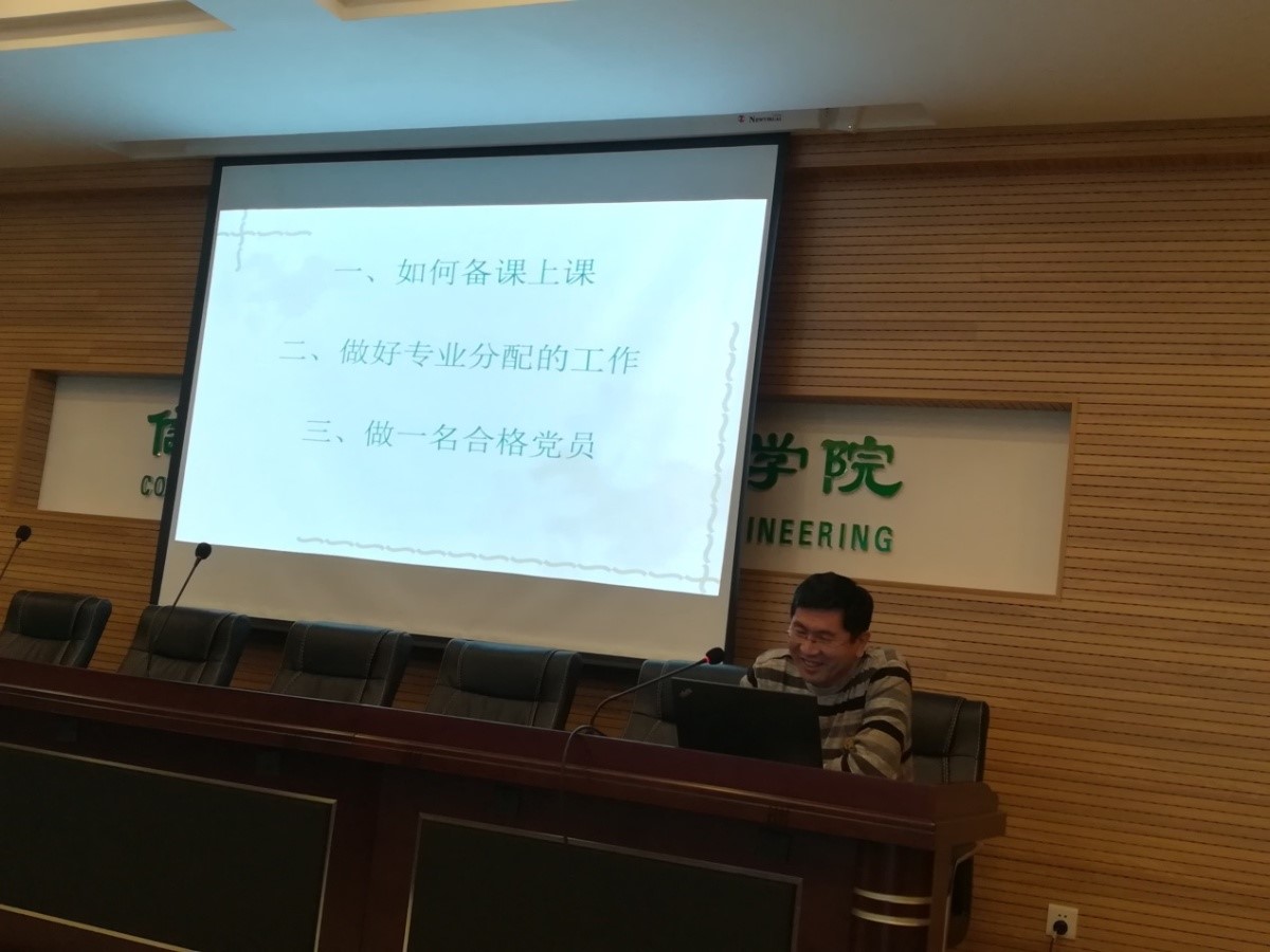 首先,由身边的先进典型,学校优秀共产党员、本科教学质量优秀一等奖获得者赵更寅老师做了题为《如何做一名合格的人民教师》的报告。赵老师从课前准备讲到丰富教学内容和改进授课方式;从一个党员应起到的模范带头作用讲到高质量完成专业交给的工作任务;从关爱平等对待每一个学生讲到如何教书育人、立德树人。赵老师朴实无华的报告如涓涓细流让大家体会到了一名普通党员教师默默奉献而又“大我”的教师情怀。