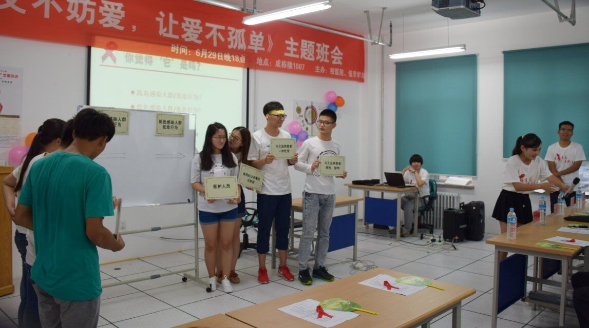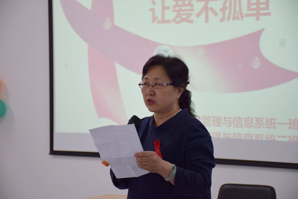2016年6月28日18点,信息学院14级信息管理与系信息系统专业一、二班在成栋楼1007举行了一次“防艾不防爱,让爱不孤单”的主题班会。李顺龙副校长、市疾控中心艾滋病防治研究所所长刘若琳、学生处处长王春海、校医院院长孔庆滨、信息与计算机工程学院党委副书记王冰亲临班会现场。