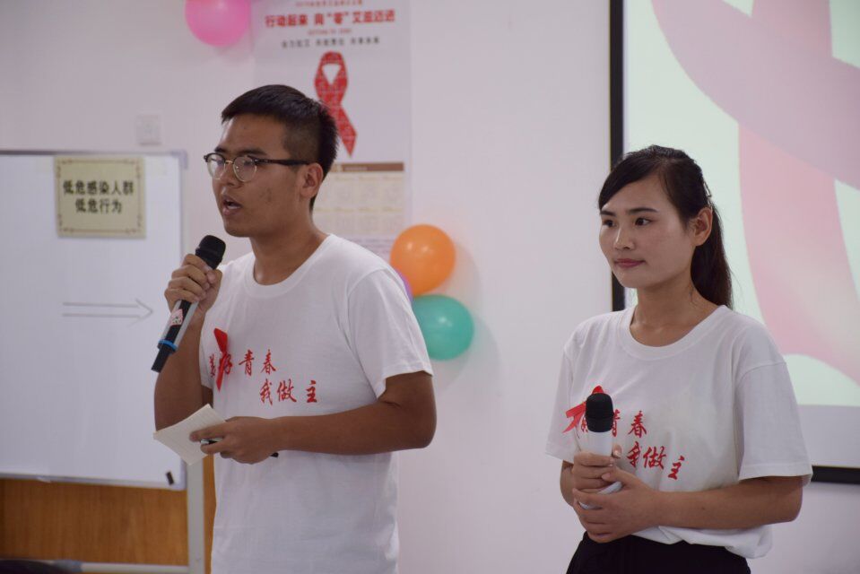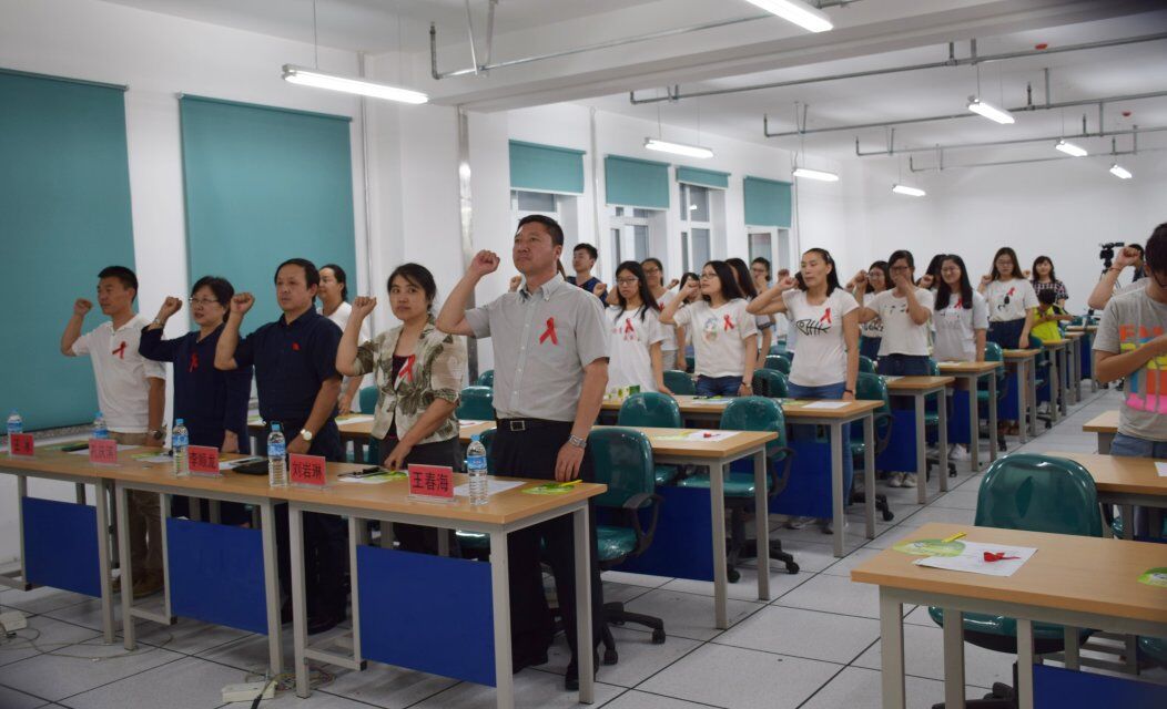 在全社会都积极关注并防治艾滋病的背景下,以班级为单位呼吁大学生了解并远离艾滋病,降低心里防线,不歧视并主动帮助和关爱艾滋病患者,规范自身行为。班会通过视频让同学们了解了艾滋病的感染途径及危害;通过抢答环节测试了学生对有关艾滋病的常识的掌握程度;通过小品《不怕不怕》诙谐的传达了“金钱诚可贵,生命价更高,若得艾滋病,一切打水漂”的思想,告诉大家健康的重要性;其间,校医院院长孔庆滨女士对主持人的提问做出了专业的指导和解答;市疾控中心艾滋病防治研究所所长刘若琳女士还通过专业的角度对艾滋病的各个方面进行了详细专业的讲解,形象生动地解答了同学们对于艾滋病防治工作的各种问题,使此次班会更具科学性、学术性。班会的最后全体同学庄严宣誓:我志愿成为抗击艾滋病的一员,主动了解艾滋病的相关信息,保护自己,与家人、朋友分享知识和经验,积极向社会宣传艾滋病防治知识,关爱和支持受艾滋病影响的同伴和家庭,与伙伴们携起手来,共同承担社会责任,共同抗击艾滋病!