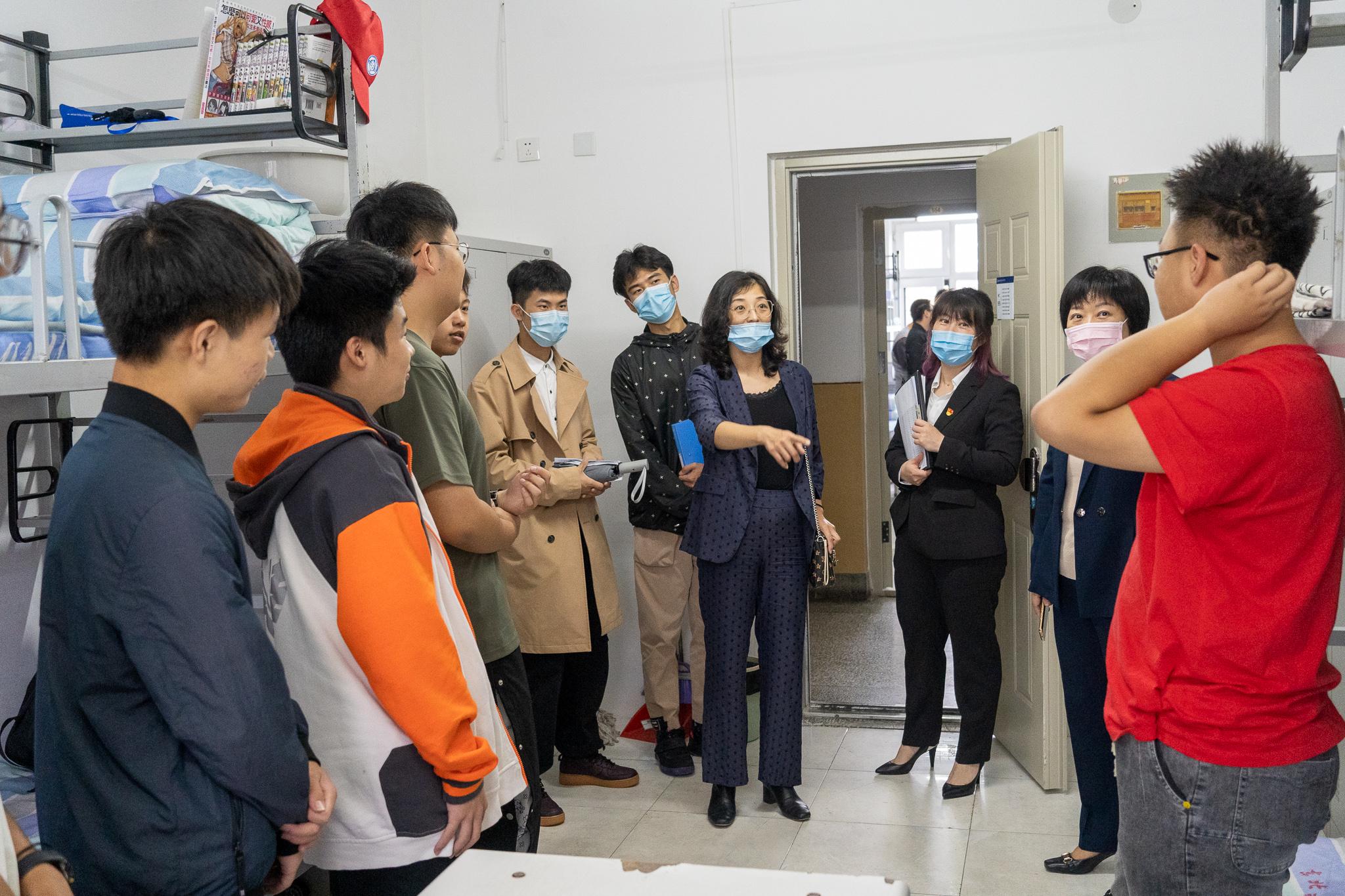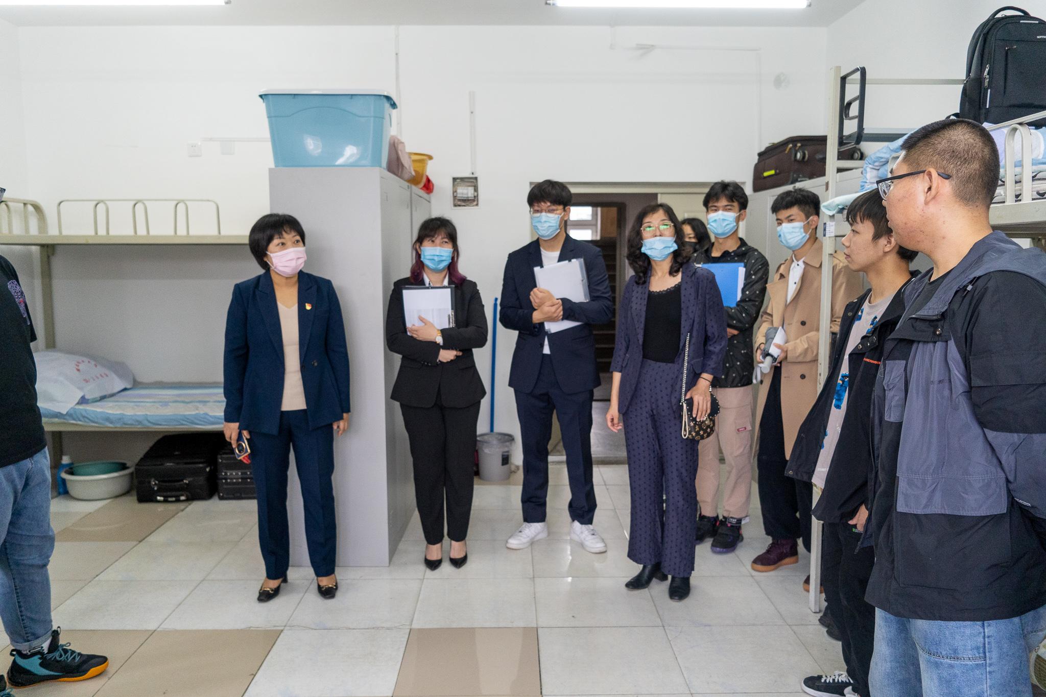 为深入了解我院2021级新生的住宿条件及生活情况,帮助新同学更快适应大学生活。信息学院党委书记钟蕾,党委副书记、副院长庄雯培,2021级辅导员张音老师、侯岚亭老师以及新生代理班主任于9月13日下午对新生寝室进行了走访活动。