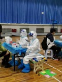 经过岗前培训后,四位志愿者穿好防护服,提前到达核酸检测场地,承担核酸检测现场扫码录入工作。自第三轮核酸检测后,核酸检测流程中增加了身份证现场验证的环节,检测速度有所减慢。志愿者的加入,使学校核酸检测工作速度明显加快,也方便了医护人员直接操作进行样本采集。密不透风的连身防护服、护目镜、口罩……“全副武装”的志愿者和医护人员们只为迎来疫情结束的那一天。