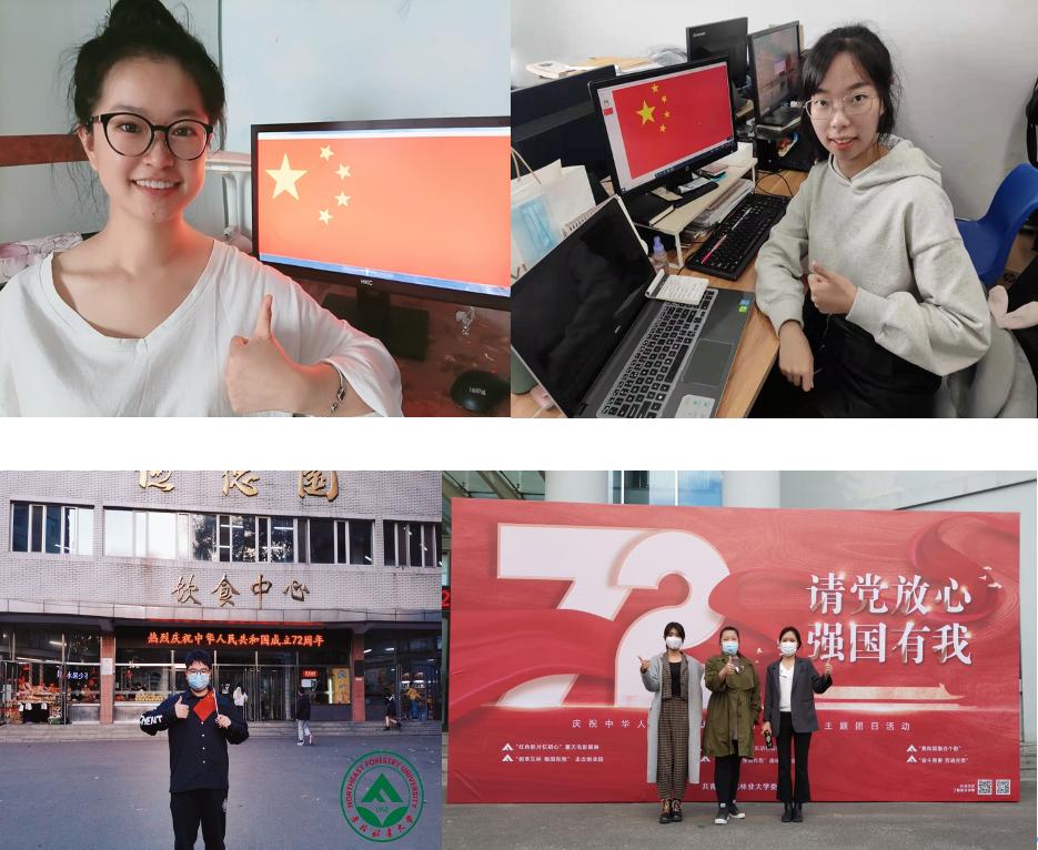 学生们洋溢着笑容与国旗合影,或是与国旗同框合影,或是在校园内与写有“热烈庆祝中华人民共和国成立72周年”内容的电子大屏合照,为祖国点赞。此项活动共收到摄影作品共计12份。