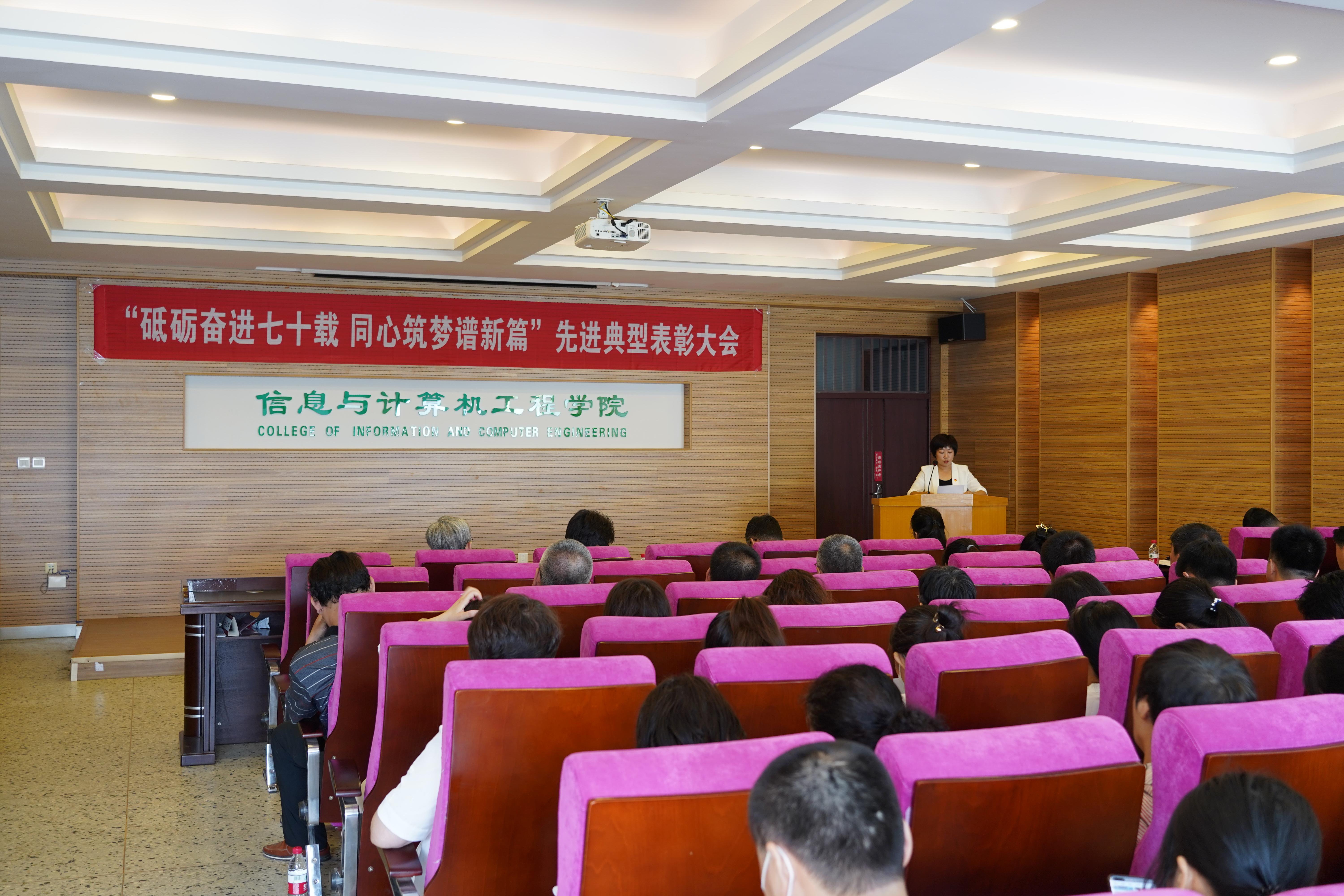 为纪念中国共产党成立101周年,庆祝学校建校70周年,7月1日上午,信息与计算机工程学院“砥砺奋进七十载 同心筑梦谱新篇”先进典型表彰大会在成栋楼1016召开,本次大会旨在表彰在学院建设发展、疫情防控中勇于担当、奋勇争先,敢闯敢试、攻坚破难,勤勉敬业、无私奉献的先优典型。学院领导班子成员、全体教职工参加本次会议,学院党委副书记、副院长庄雯培主持会议。