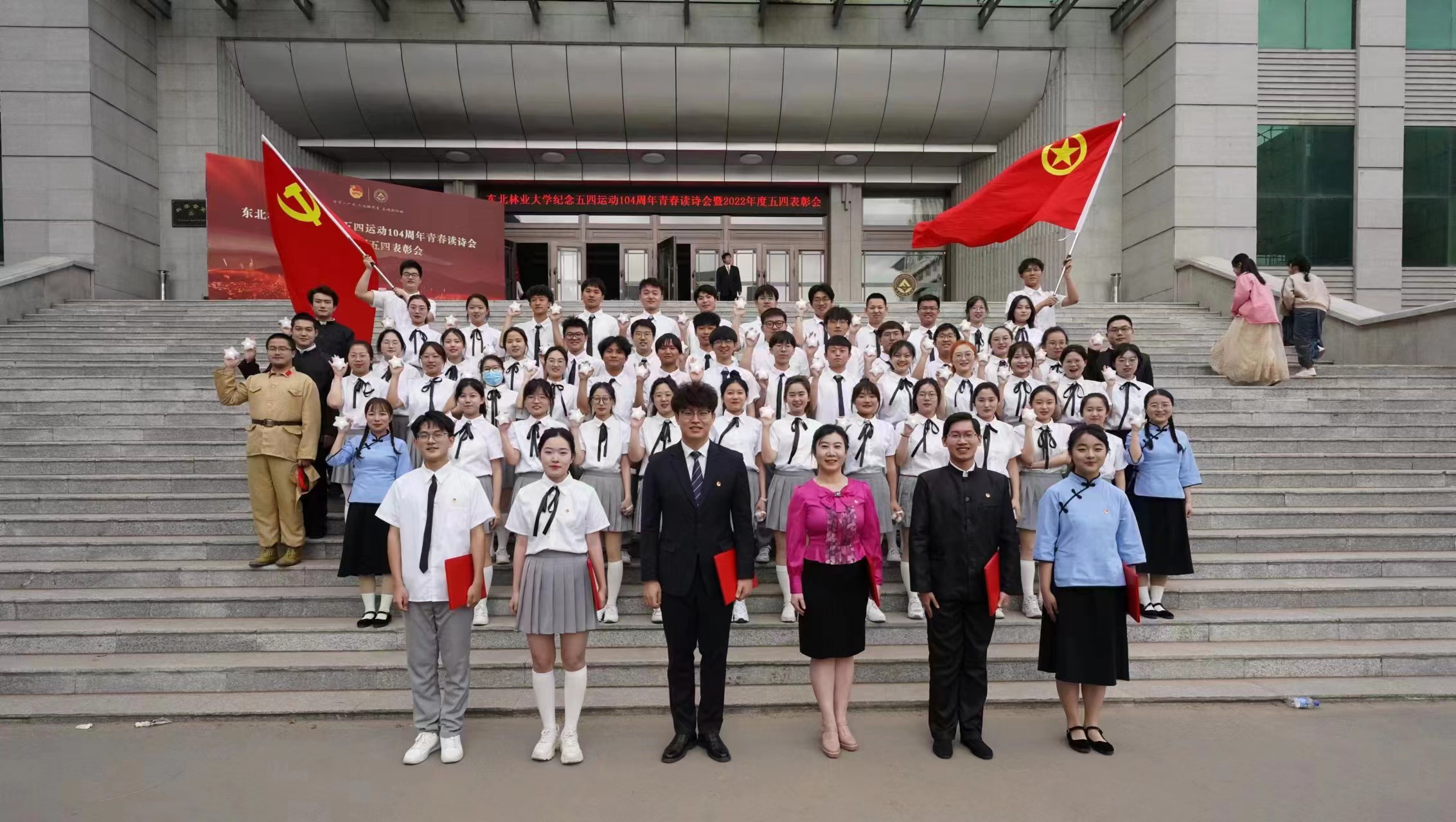 为深入学习习近平新时代中国特色社会主义思想,全面学习贯彻党的二十大精神,全面落实习近平总书记关于青年工作的重要思想,引导广大青年学生坚定不移听党话、跟党走,厚植家国情怀,传承东林精神,2023年5月4日、6日,校团委举办东北林业大学纪念五四运动104周年青春读诗会,我院团委书记张音、辅导员侯岚亭作为领诵参与其中。经过半个月充实而又紧张的筹备,最终我院取得了决赛一等奖的优异成绩!