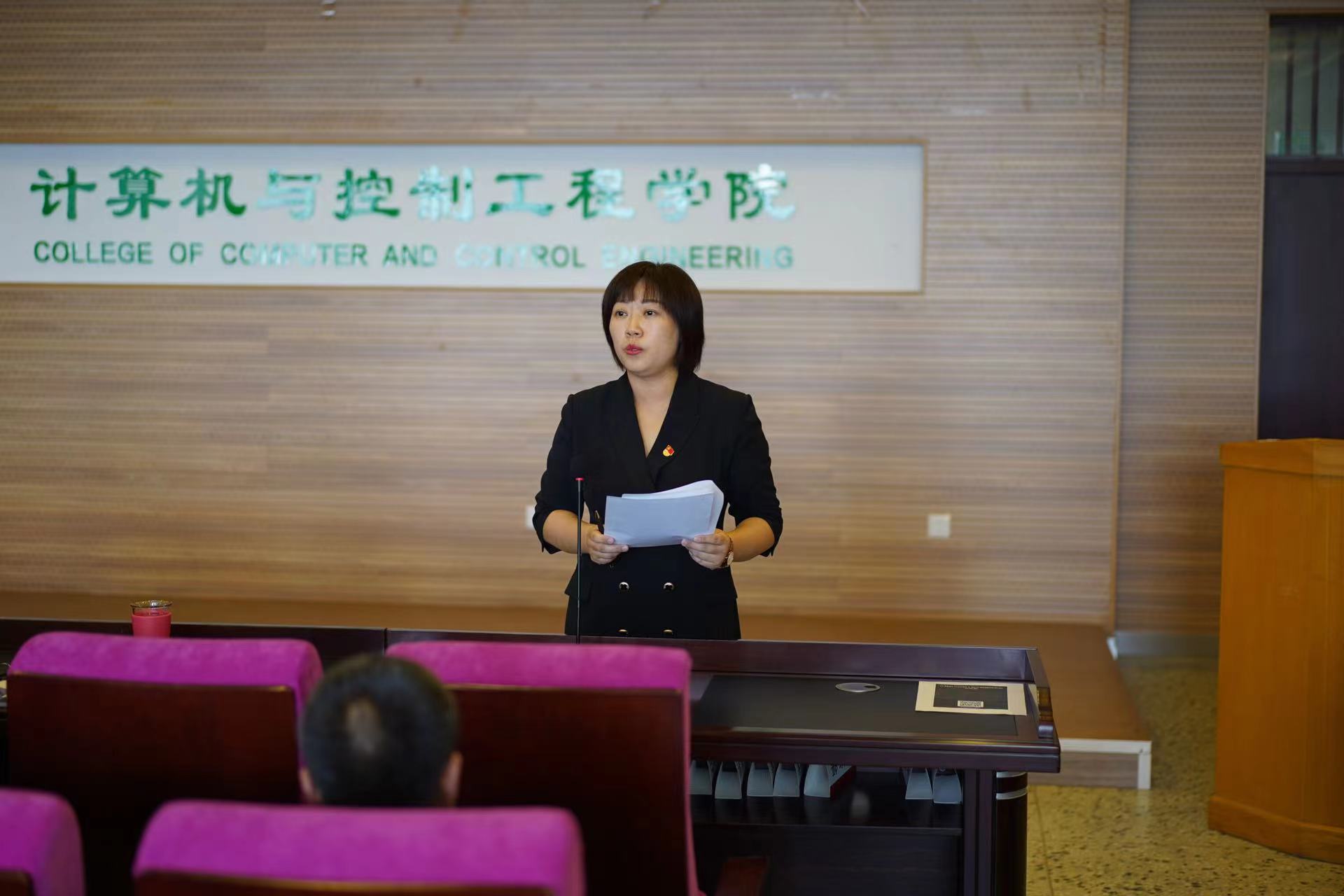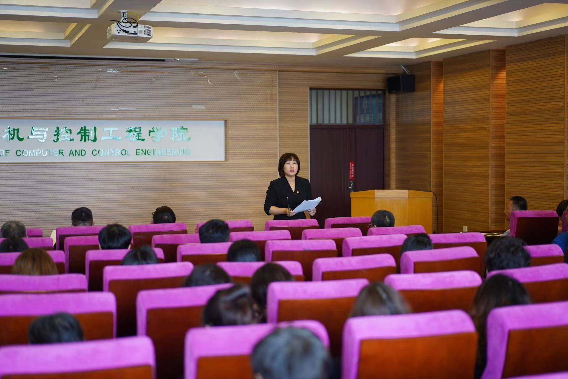 钟蕾书记宣布了关于计算机与控制工程学院新一届教授委员会成员调整的决定,并对选举候选人推选原则、选举工作要求、教授委员会选举候选人推荐原则及候选人人选等进行了说明。