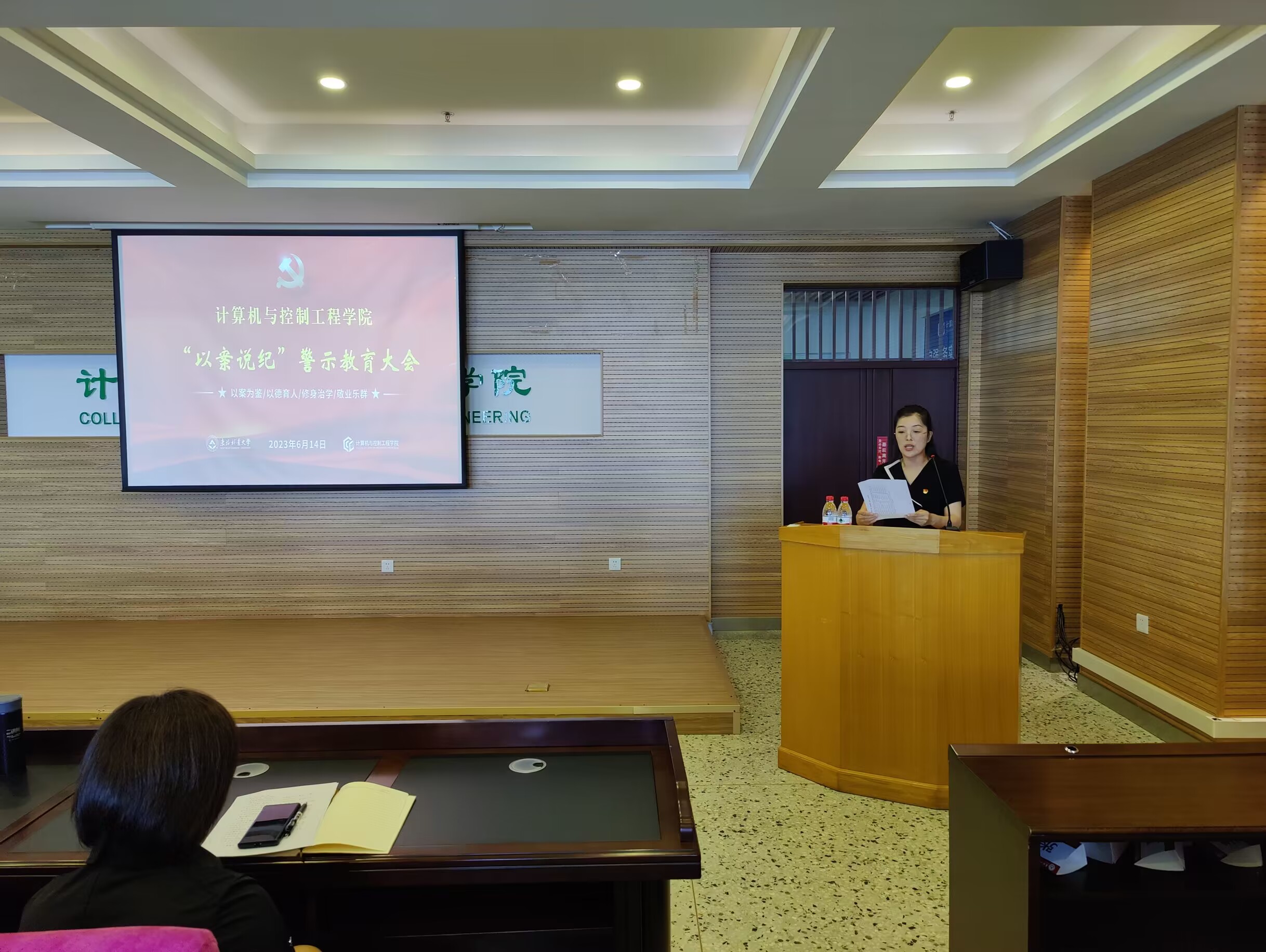 为贯彻落实《教育部关于在教育系统开展师德集中学习教育的通知》文件精神,推进学院师德师风建设工作,引导学院广大教师不忘立德树人初心,牢记为党育人、为国育才使命。2023年6月14日下午14:00,计算机与控制工程学院在成栋楼1016会议室召开师德师风集中学习教育暨“以案说纪”警示教育大会,学院领导班子成员出席会议,全体教职工参加会议。会议由学院党委书记钟蕾主持。