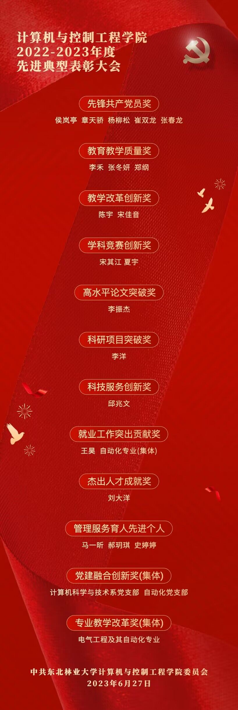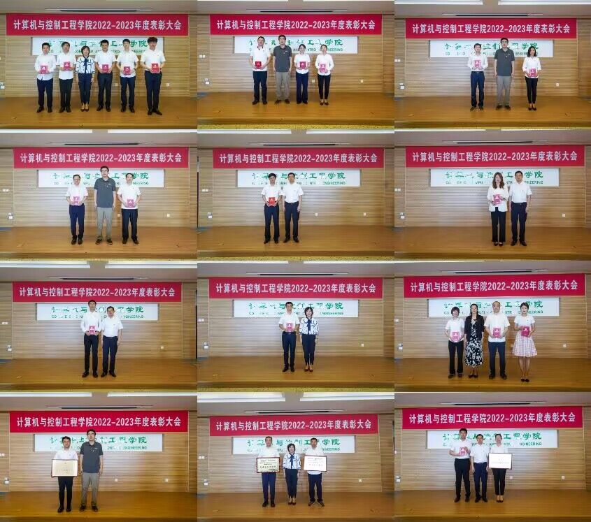 首先,院长汪国华宣读了《计算机与控制工程学院关于2022—2023年度表彰的决定》,表彰了计算机科学与技术系党支部、自动化党支部、电气工程及其自动化专业、自动化专业四个先进集体,侯岚亭、李洋、宋佳音等20名优秀教师。学院领导分别为先进集体及受表彰人员颁奖。