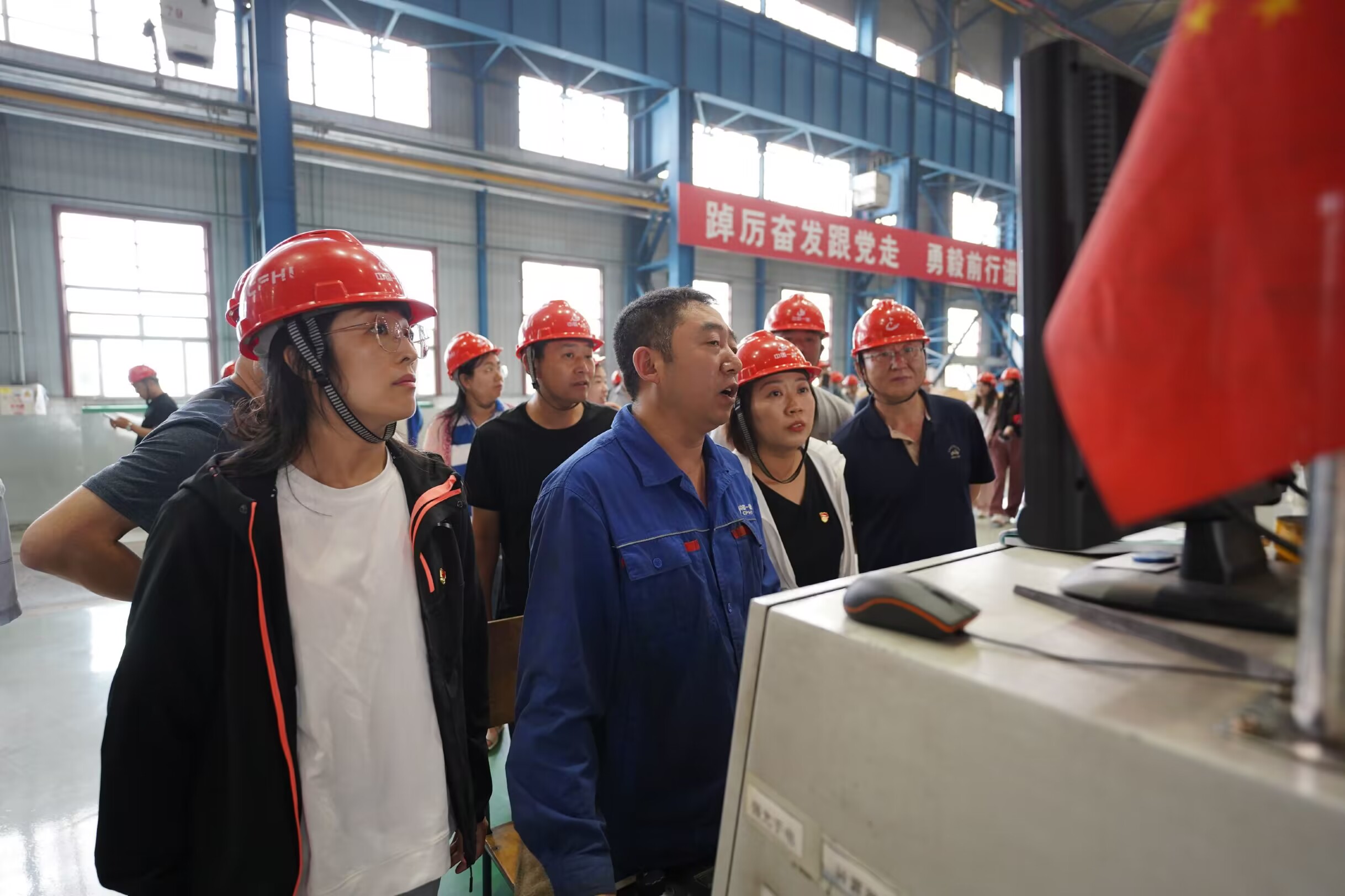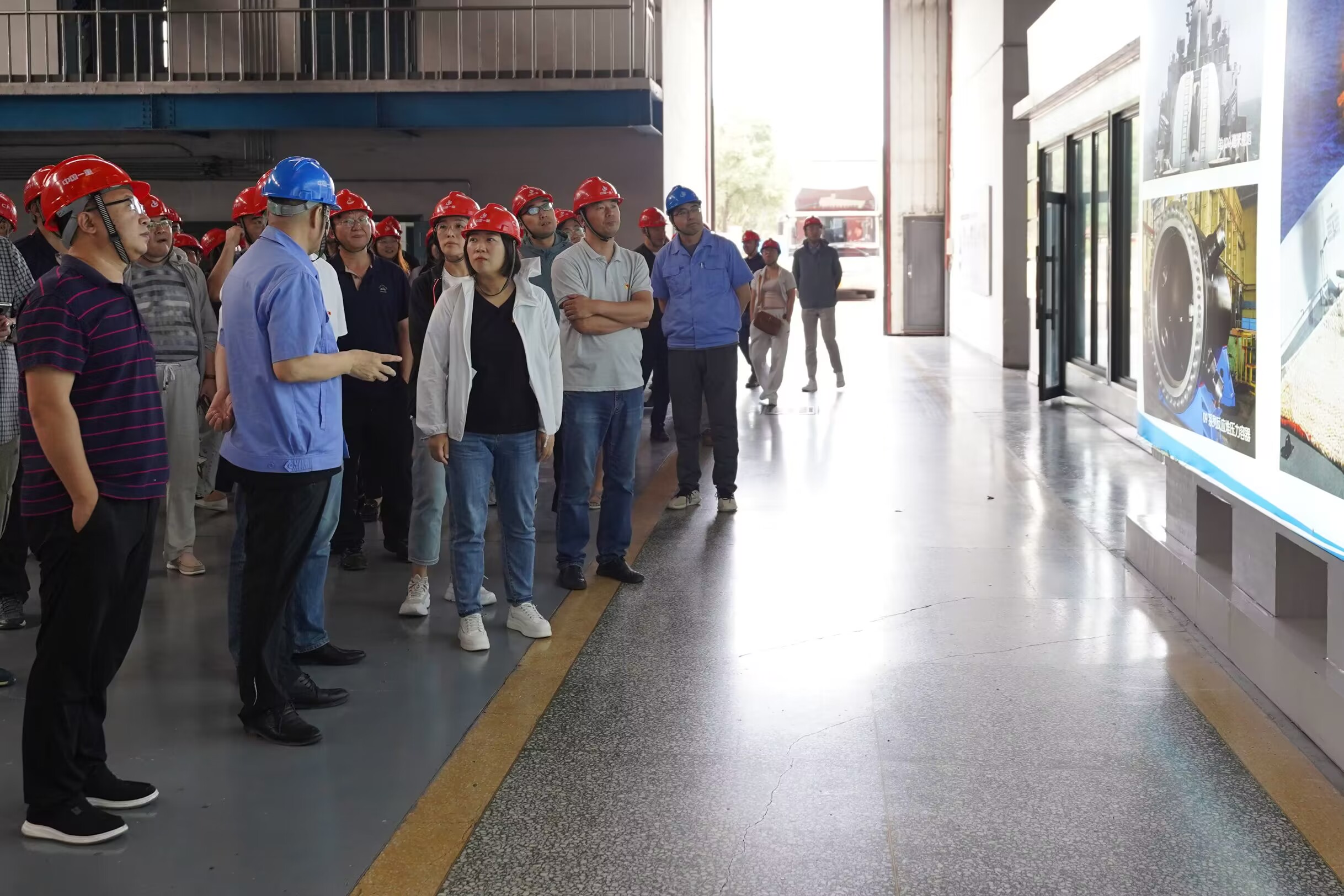 随后中国一重工作人员引领大家参观了中国一重厂房生产车间,通过实物、讲解相结合的方式,全方位了解了中国一重从小到大、由弱到强,励精图治、阔步前行的发展历程。