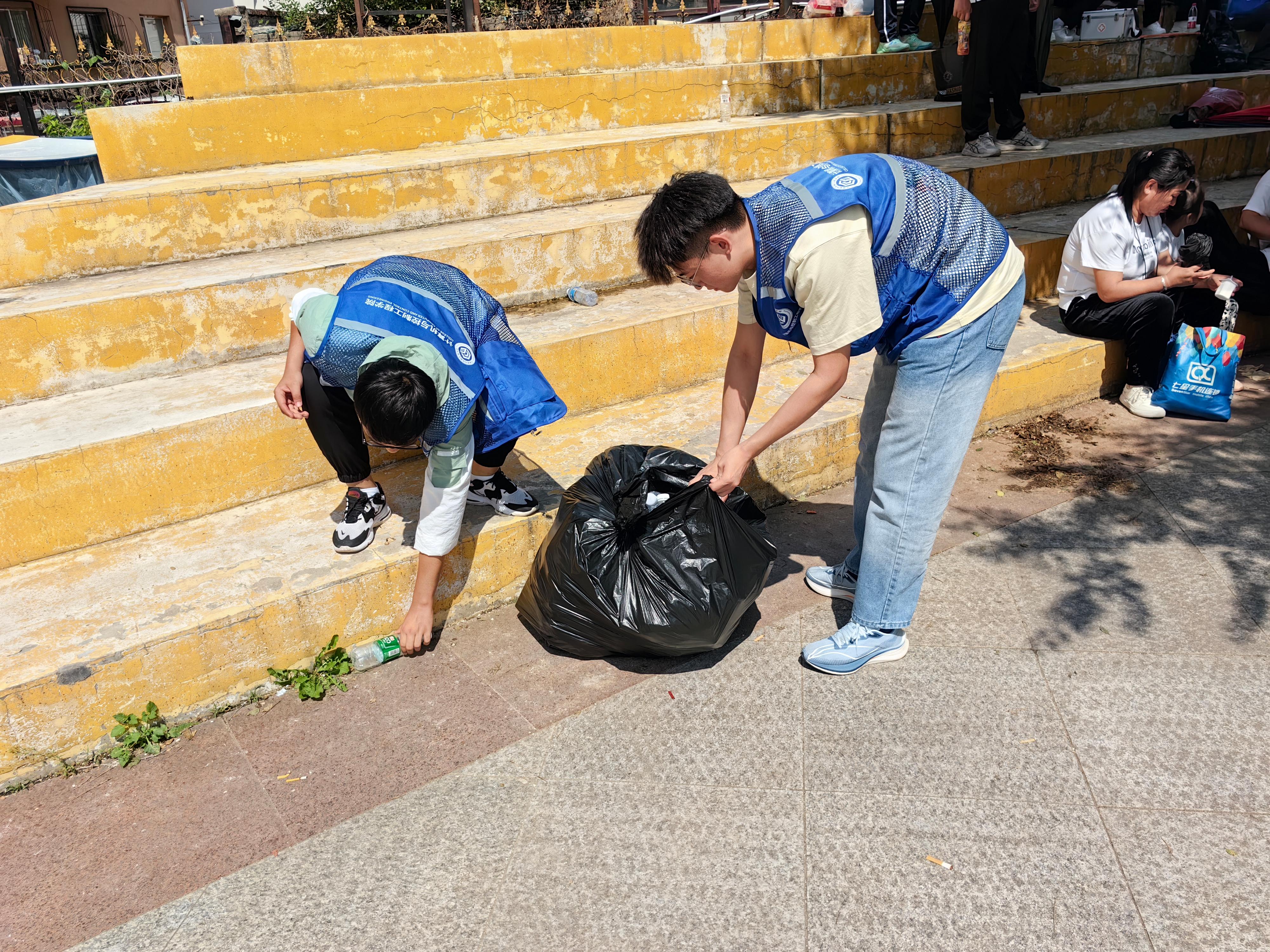 运动会结束后,志愿者们并没有停歇。他们主动拿起清扫工具,认真地打扫场地卫生。他们的身影在炎炎烈日下显得格外高大,他们的行动也赢得了在场师生的赞赏。