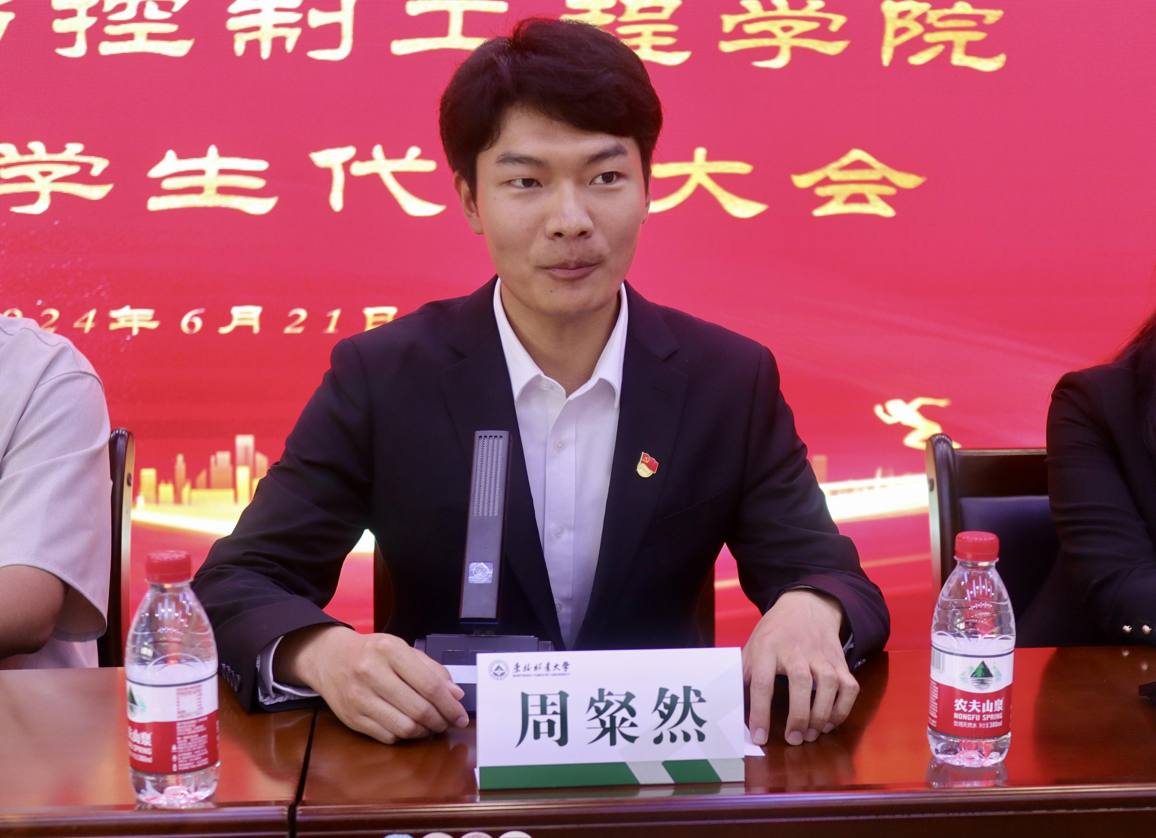 校学生会主席团代表周粲然致辞。他对计算机与控制工程学院学生会、研究生会在校运会、集体舞大赛和“优秀学生分会”评比中取得的优异成绩表示祝贺。希望同学们能够肩负历史使命,坚定前进信心,努力成为担当民族复兴大任的时代新人,奋力书写为中国式现代化挺膺担当的青春篇章,让青春在不懈奋斗中绽放绚丽之花。