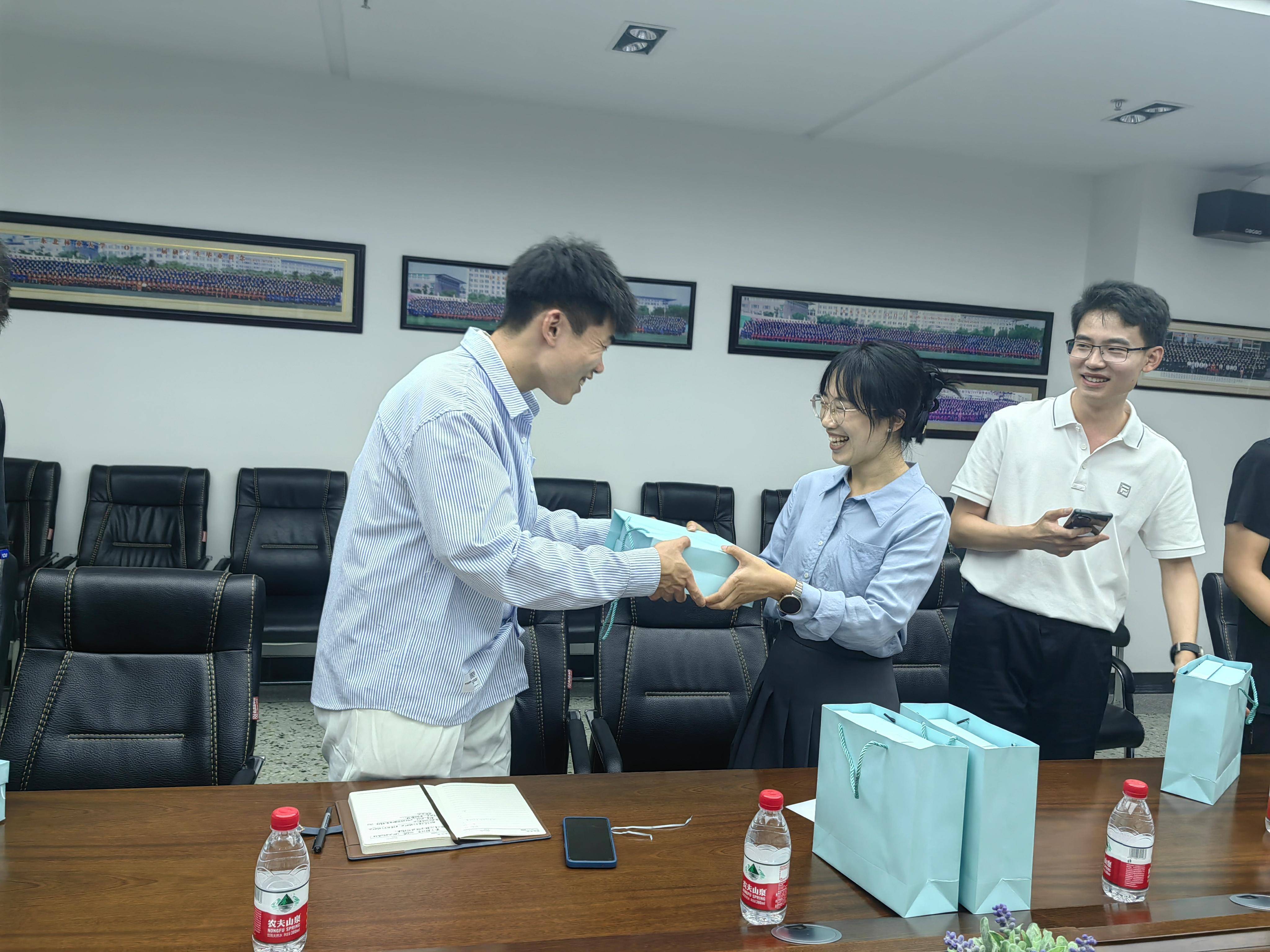 钟蕾和庄雯培同时为新入职教师送上了首个教师节的专属礼物,随后召开了新入职教师座谈会。针对新入职教师们可能会面对的大学生“学业预警”情况,钟蕾强调:要重视学生们的心理和学习状态,并对辅导员提出做好“学业预警”的摸排和预防工作,把问题提前化解,尽量避免“学业预警”和“退学试读”等现象发生。针对新入职教师们提出的查阅文献库资源不足等问题,钟蕾也详细了解情况,积极为大家解决困难。座谈会在新入职教师们兴奋的拆“盲盒”和互换“盲盒”礼物的欢笑中圆满结束。