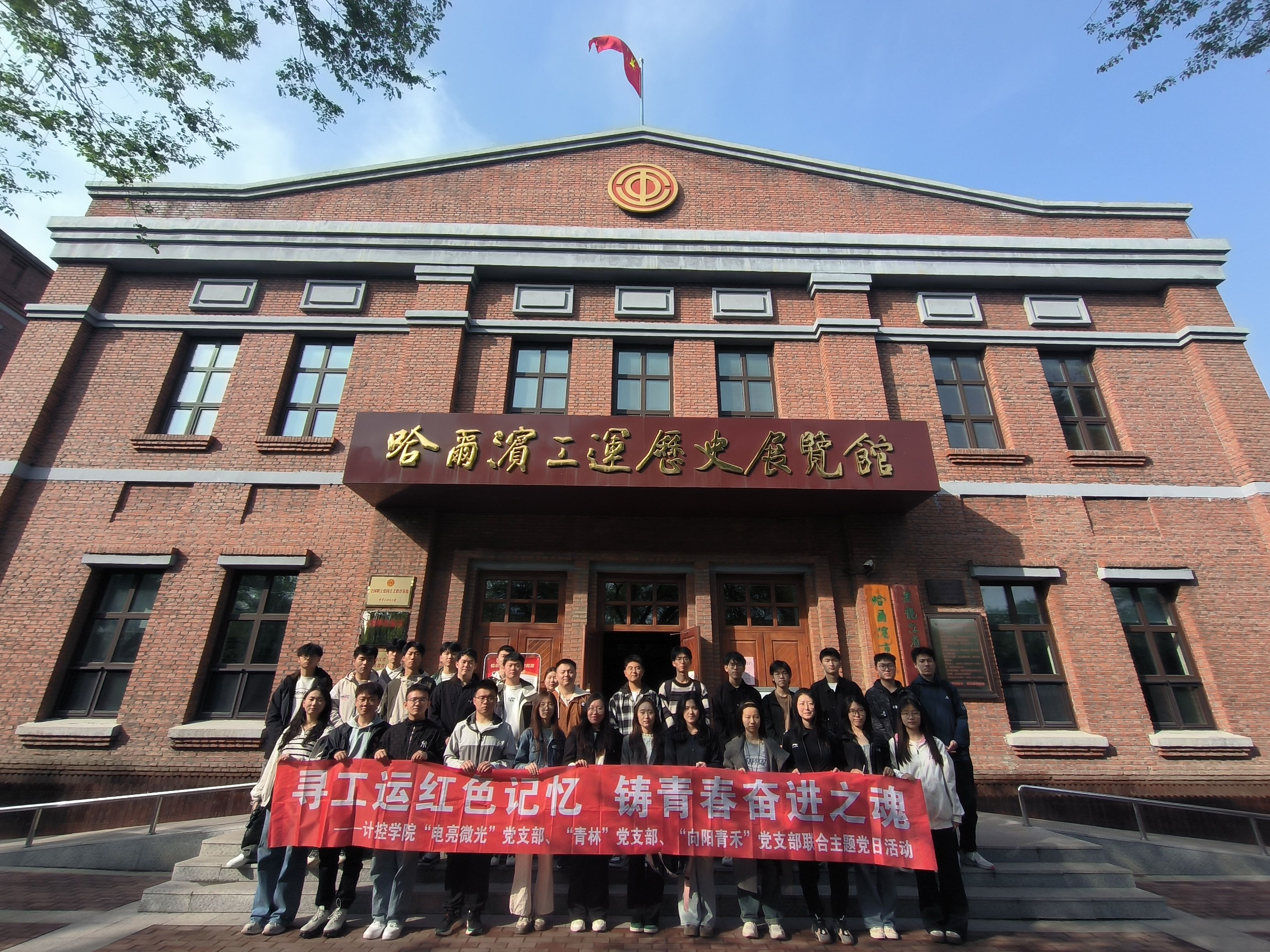 为深入了解工人阶级在中国历史中的重要地位,加强爱国主义教育,5月16日,计算机与控制工程学院“电亮微光”党支部、“青林”党支部、“向阳青禾”党支部联合开展主题党日活动,前往哈尔滨工运历史展览馆参观学习。通过本次参观学习,支部党员不仅对中国工人运动历史有了更加深刻地认识,也更加深刻地感受到了工人阶级在哈尔滨这座城市翻天覆地的巨变中发挥的坚不可摧的主力军作用。