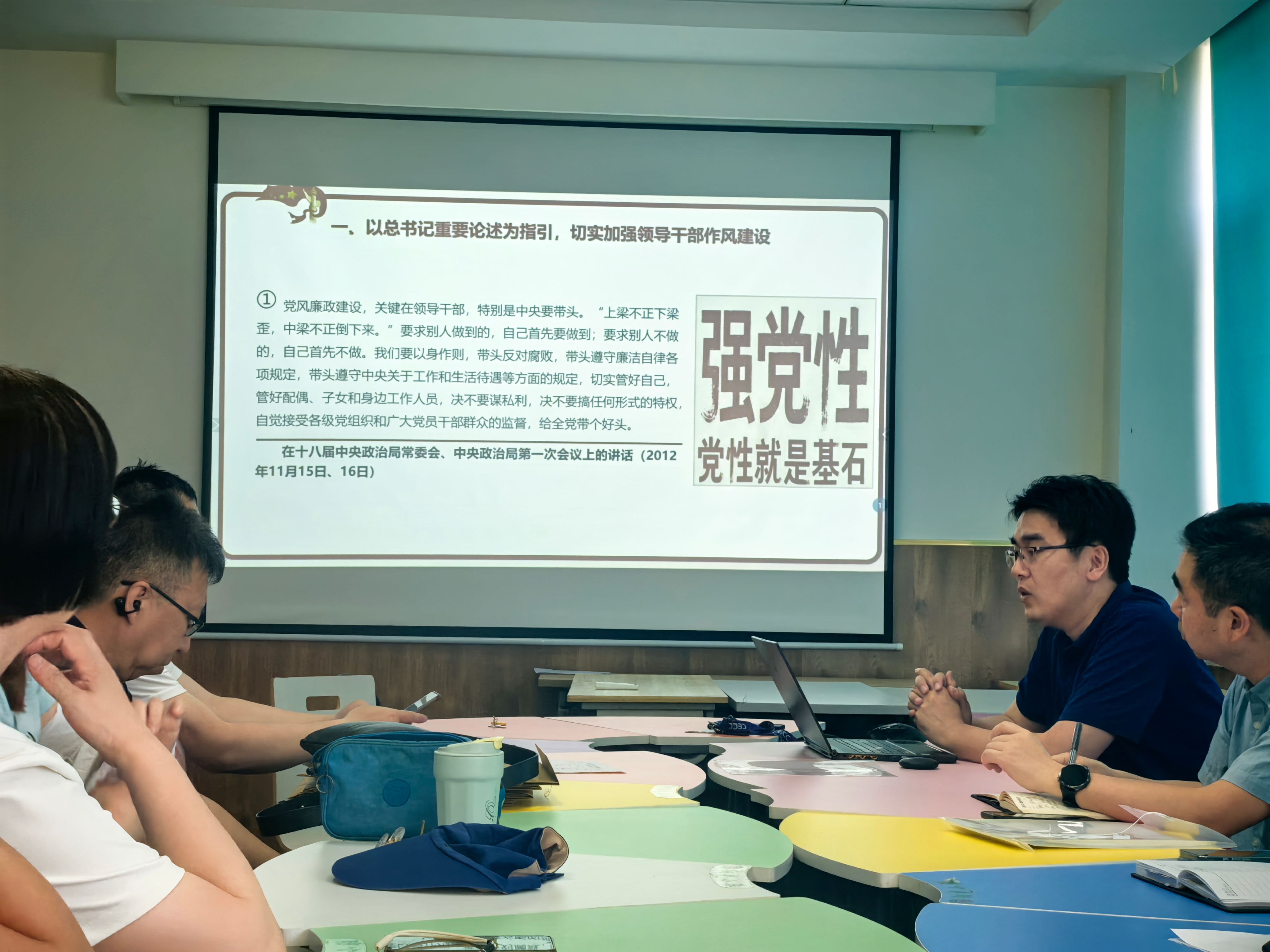 党课专题学习了习近平总书记关于 "领导干部要带头转变作风" 的重要论述,李丹引用 "上梁不正下梁歪" 的生动比喻,结合长征军需处长以身作则的历史事例,深刻阐释 "头雁效应" 的政治内涵。他强调,领导干部需对标 "坚守正道、严格按党纪国法办事" 的要求,坚决同特权思想作斗争,在党性修养、廉洁自律等方面为教师队伍树立标杆。