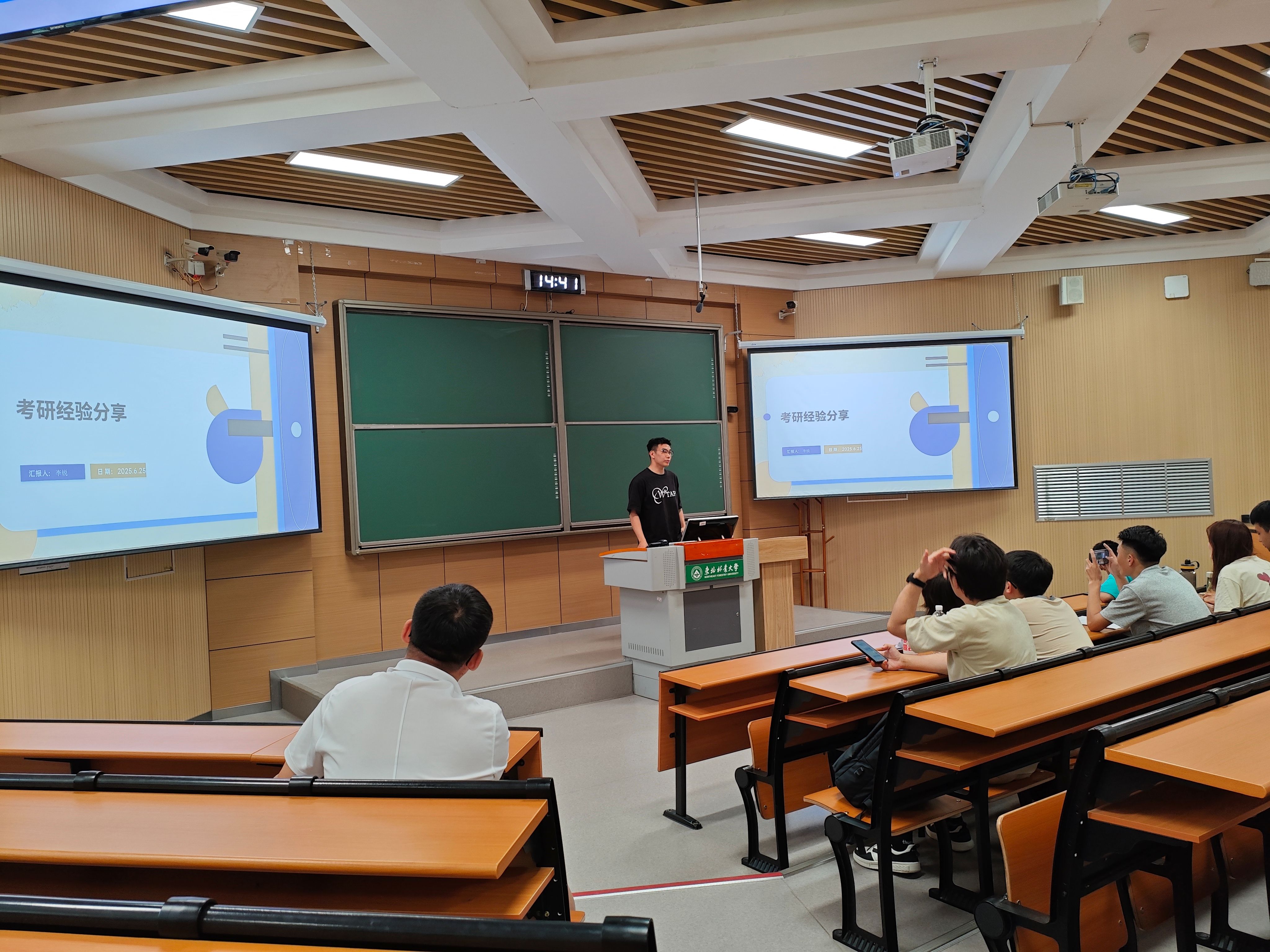 在升学分享环节,保研至华中科技大学的林鑫杰结合自身竞赛经历,强调“早规划、重积累”的重要性:“数学基础课要学扎实,编程能力可以通过长期的代码练习来提升,建议从大一起参与科研项目、学科竞赛,能显著提升保研竞争力”。保研至天津大学的郑存艺则分享了自己“跨界”探索的经历:“我的毕设是做自动驾驶场景的三维重建方向,保研面试时老师很认可这种跨专业尝试,建议学弟学妹充分利用咱们专业优势,很容易形成‘AI+X’特色”。