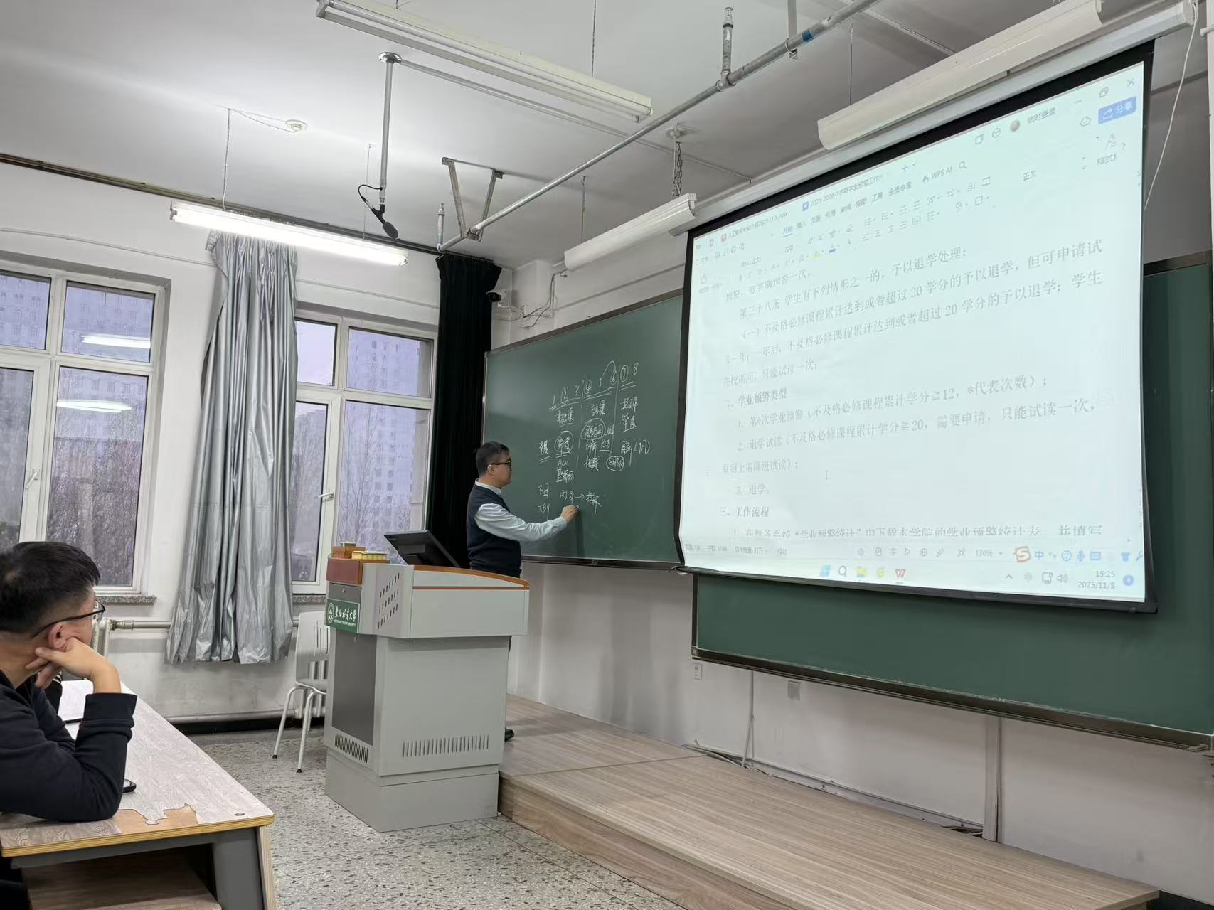 紧接着,崔双龙副主任为新生们解读了学校关于学业预警的相关文件,郑重提醒大家务必从入学之初就端正学习态度,重视学业成绩,避免挂科。他还就“大学四年各阶段需要注意什么”这一新生普遍关心的问题,提供了清晰的路线图:大一、大二阶段需夯实基础,重点关注编程类竞赛(如ACM、蓝桥杯)及大创项目;进入大三专业课学习阶段,则可积极参与创新创业挑战赛等更高层次的实践项目;大四则聚焦于毕业设计及未来规划,为求职、保研或考研做最后冲刺。他特别强调本科生需合理分配课余时间,并提醒有志于考研的同学提前关注考研408相关课程的学习。