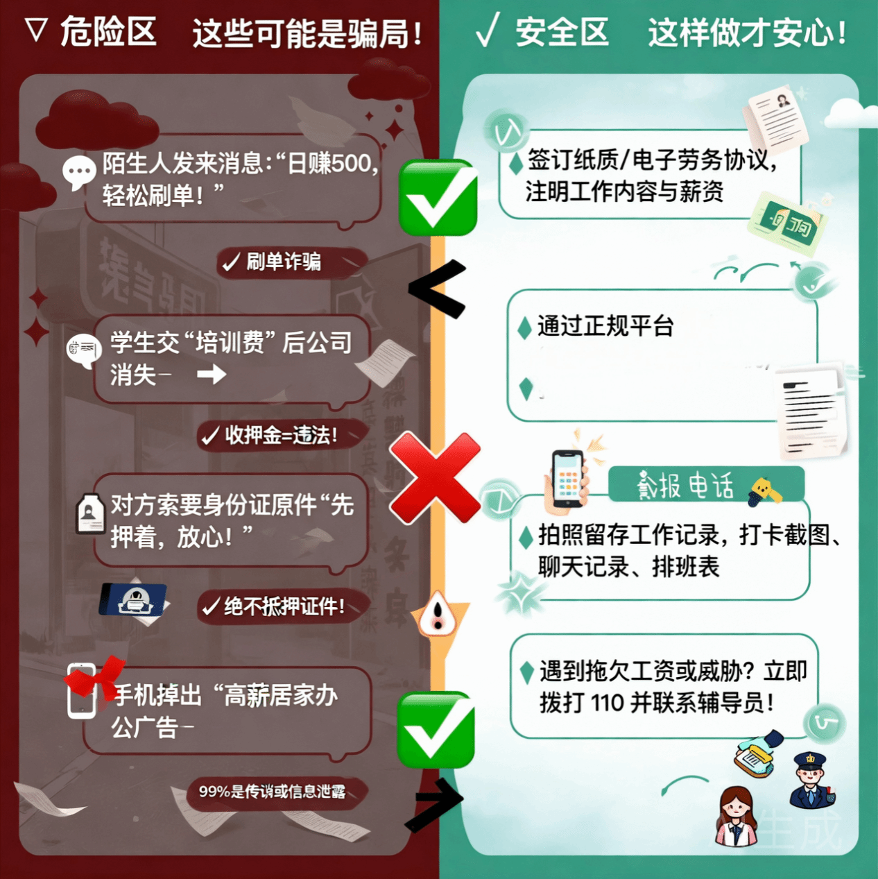 2.警惕“高薪诱惑”“刷单返利”等网络诈骗陷阱。