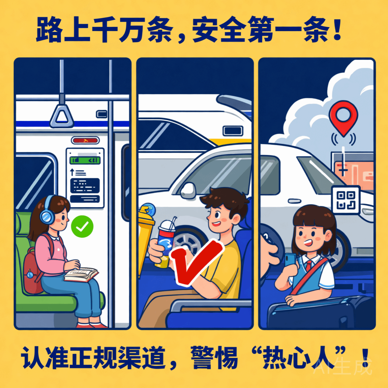 3.乘车途中不轻信陌生人,不透露个人信息,警惕诈骗话术。