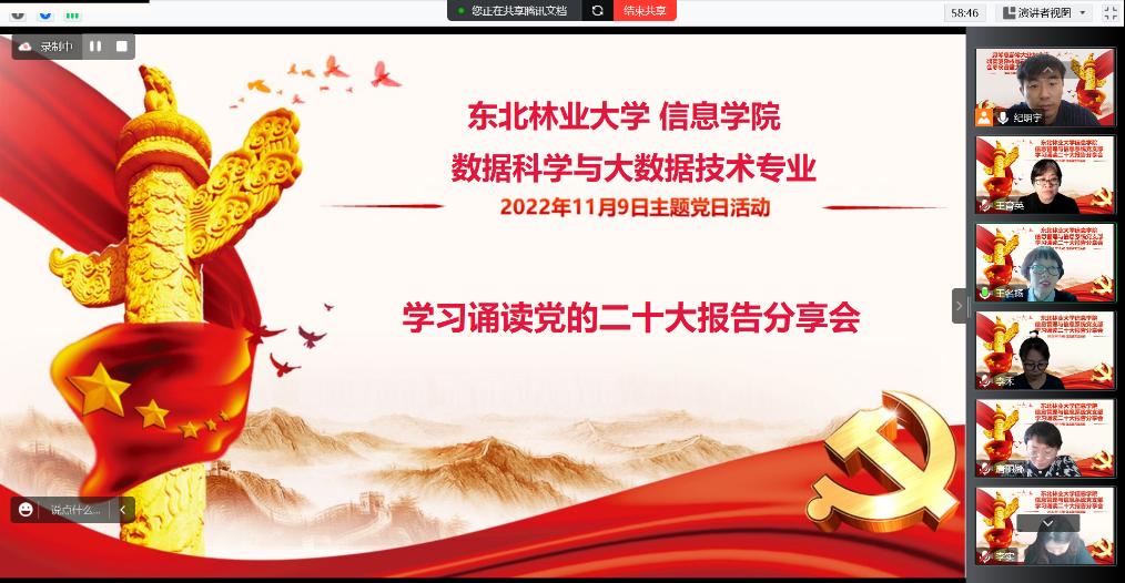 11月9日,数据科学与大数据技术专业开展了以学习党的二十大精神、服务数字经济、办好大数据专业为主要内容的《学报告 促成长》主题党日活动。此次活动以线上形式开展,专业教师全员参加。
