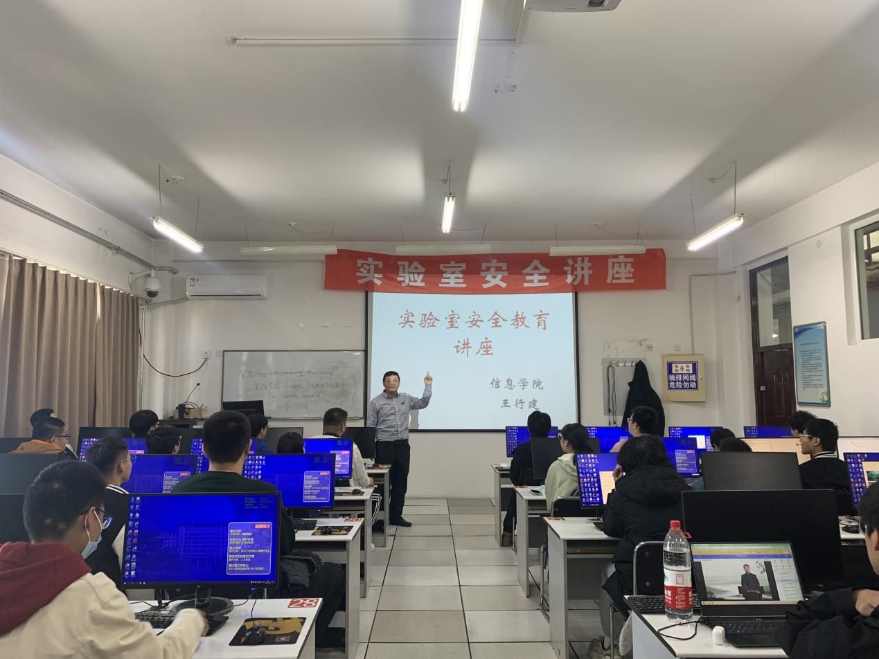 为了更进一步强化安全意识,加强实验室安全教育 ,避免学生集中实习、实验期间实验室安全事故的发生,实验中心于10月18日在丹青楼901和904实验室,开展了“实验室安全讲座”,讲座由实验中心王行建老师主讲,采用了线上和线下相结合的方式,2019级计算机科学与技术专业和软件工程专业的全体同学参加了此次讲座。