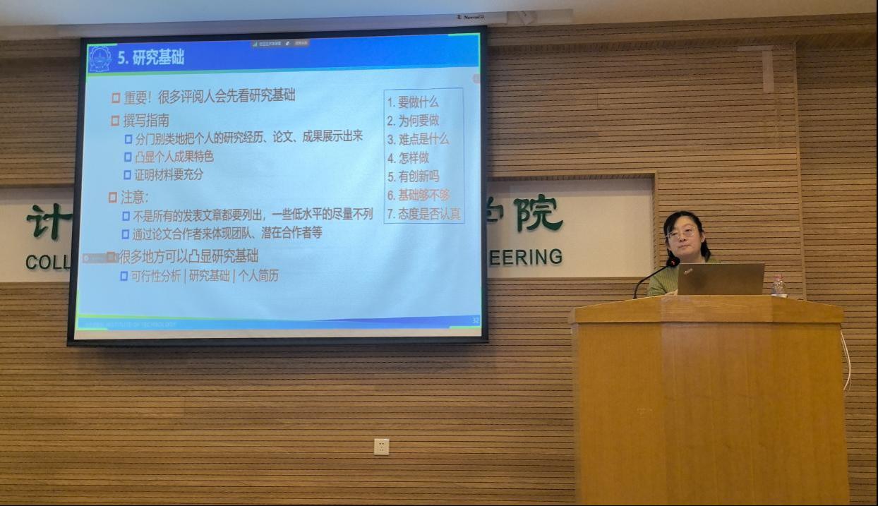 赵妍妍教授对国家自然基金申请书的多个核心要素进行了深刻剖析,包括选题的重要性、科学问题的精准定位、申报内容的全面构建、专家评审的独特视角以及如何规避申请过程中的常见误区。她将基金撰写的整体思路凝练为七大要点,并逐一详细阐述了“研究目标”、“研究意义”、“面临挑战”、“实施路径”、“创新亮点”、“研究基础”以及“撰写态度”等关键方面。赵教授强调了申请书撰写过程中的规范性准确性极为重要,而创新性和科学性决定申请书的质量。她结合国家自然科学基金申请过程中的实际案例进行了分析,重点指出在申请书撰写过程中的常见问题并提出具体修改建议。赵教授的报告内容详尽丰满,对于我院教师在如何撰写高质量的国家自然科学基金申请书方面具有明确的指导性和深刻的启发性。