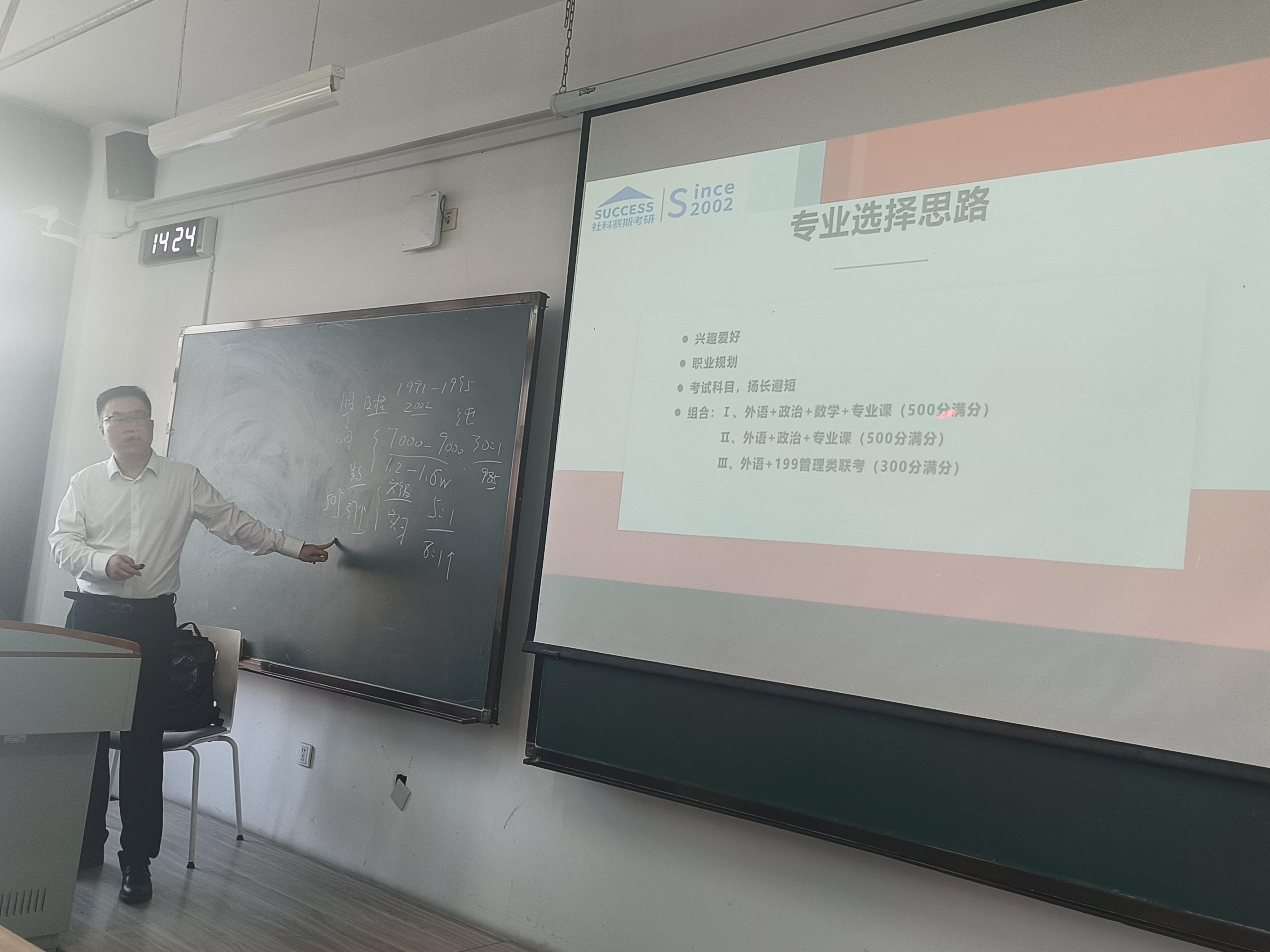 为帮助我院学生系统了解考研知识,引导同学们科学择校、备考、复试,营造积极向上的学风,2024年6月12日下午14:00社科赛斯在成栋308教室面向计算机与控制工程学院的同学开展了一场公益性讲座,讲座内容包括考研保研考公就业等多方面,2022级三个大类专业的同学参与了本次讲座。