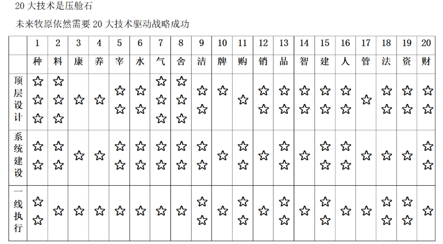 (注:⭐️代表20大技术的当前水平,星级越高,代表越需要跨界突破;星级越低,代表越需要钻尖死磕。)