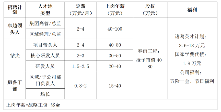 春雨工程:公司施行员工持股计划时,入职1-2年忠诚有潜力的大学生均有机会入选;