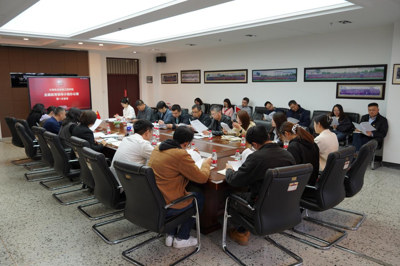 会上,庄雯培宣布成立计算机与控制工程学院学习贯彻习近平新时代中国特色社会主义思想主题教育领导小组办公室。办公室下设5个工作组,分别为:综合协调组、学习宣传组、调研实践组、检视整改组和指导监督组,各工作组人员组成明确,职责分工清晰,并对各小组工作分工、工作运行机制等方面进行了讨论研究。