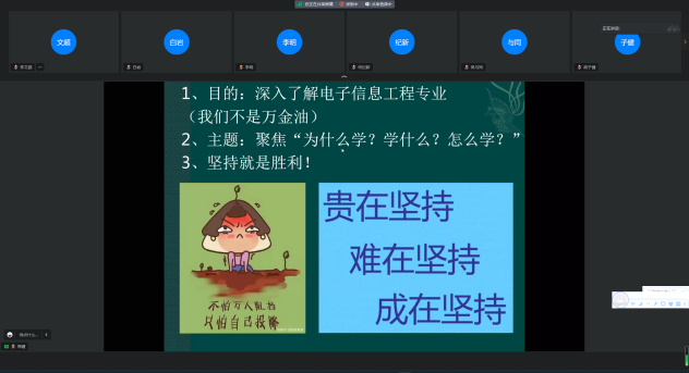 为了更有针对性地进行能力培养,提升学生工程实践能力,促进学生综合素质提高,指导学生就业,改善学生考研和就业观念,电子信息工程专业在5月10日晚召开了2020级、2021级年级大会。会议由专业副主任白岩主持,采用钉钉会议与腾讯会议联播的形式,专业主任邢键、副主任李明、相关班级的班导师、辅导员、20级和21级电信学生共计160余人参加了会议。