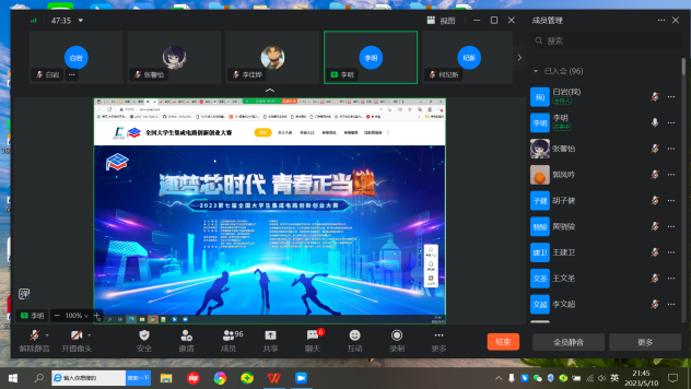 然后李明老师为同学们介绍了竞赛情况。李老师为同学们介绍了学校和学院推荐的比赛,包括中国大学生电子设计竞赛、嵌入式芯片与系统设计竞赛、蓝桥杯、集成电路创新创业大赛以及中国软件杯的比赛等,对每一个比赛李明老师做了相关赛道的介绍,希望同学们能够参与其中,锻炼实践能力,为就业或读研打下基础。