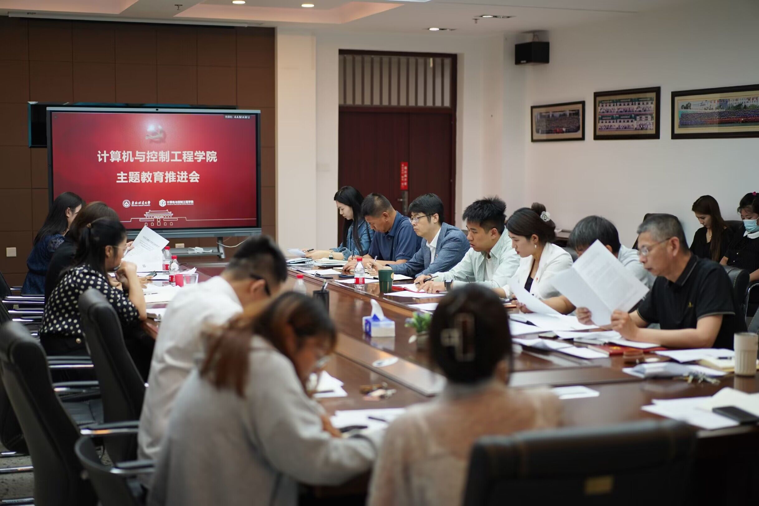 6月7日下午,计算机与控制工程学院在成栋1014会议室召开学习贯彻习近平新时代中国特色社会主义思想主题教育工作推进会。学院主题教育领导小组办公室成员、全体党支部书记参加会议。会议由学院党委书记钟蕾主持。