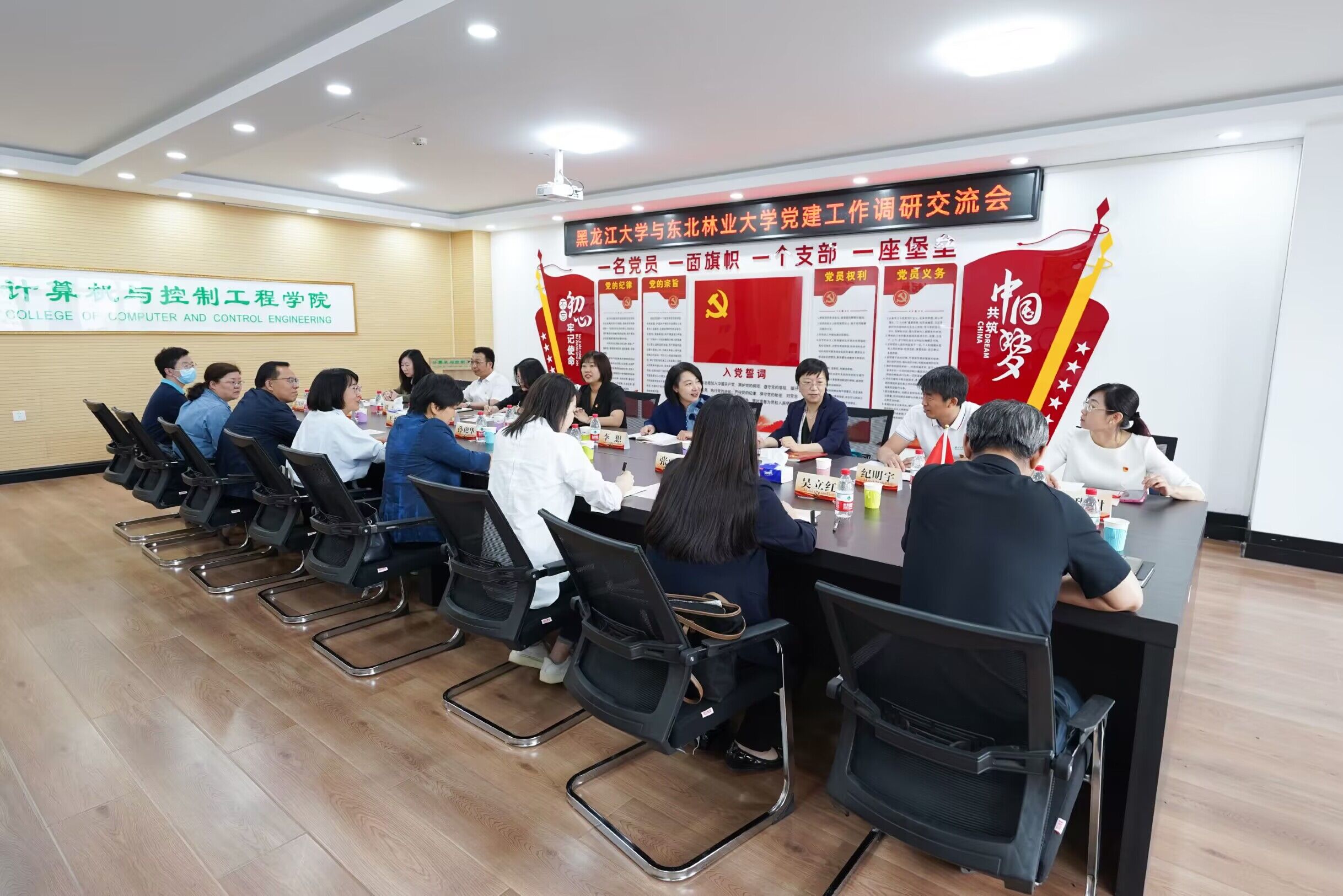 座谈交流会上,李想对黑龙江大学一行的到来表示热烈欢迎,并详细介绍了东北林业大学在近年来党建双创工作方面所取得的成果,特别是“兴林担当,美美与共”党建品牌建设。同时,钟蕾就计算机与控制工程学院获评黑龙江省公办院校“标杆院系”作了经验分享,并希望两校能围绕党建工作进行深入交流。