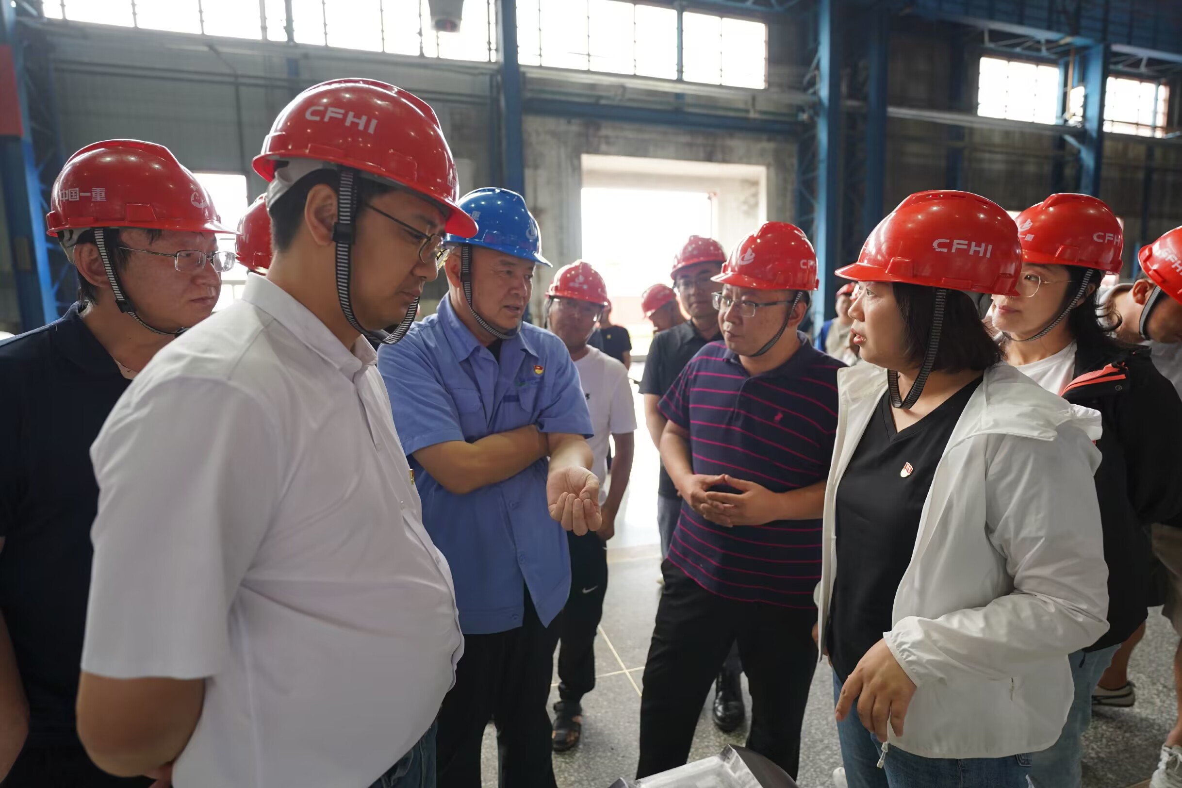 随后中国一重工作人员引领大家参观了中国一重厂房生产车间,通过实物、讲解相结合的方式,全方位了解了中国一重从小到大、由弱到强,励精图治、阔步前行的发展历程。