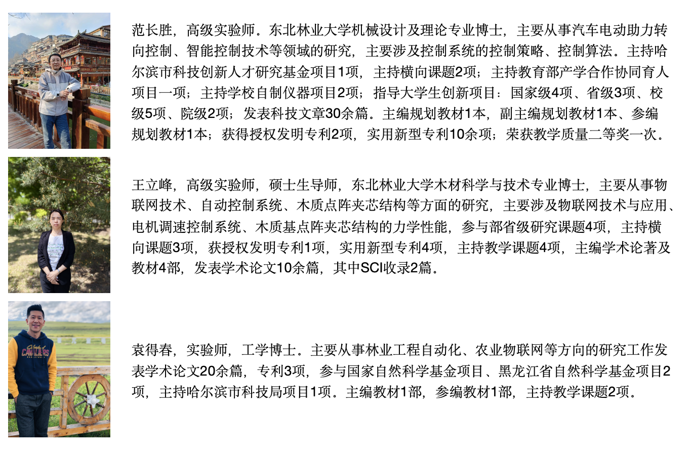 实验室现有专职实验指导教师3名,其中高级实验师2名,实验师1名;获得博士学位3名。是一支年龄、职称、学历结构合理;年富力强、高效精干、教学经验丰富的实验教师队伍。