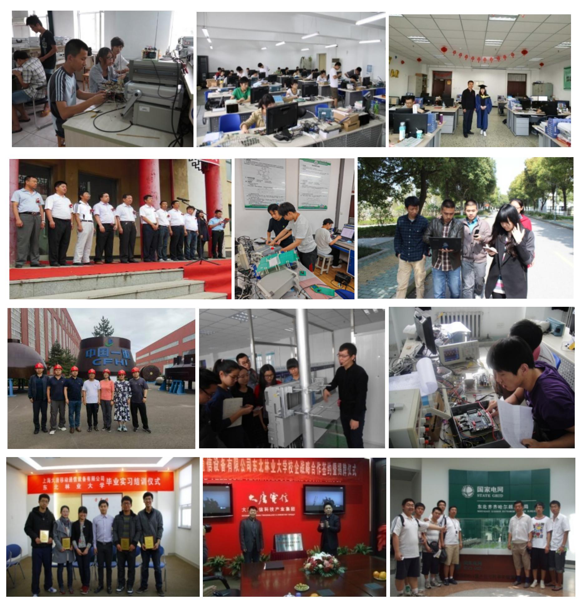 实验室与东北林业大学大唐移动校区合作、齐齐哈尔信广网络有限责任公司、移动通信人才联合培养基地、中移铁通齐齐哈尔分公司等企业联合建设了校内外实训基地,实现校外顶岗实习实训。依托实验室建有的程控交换、宽带接入、光纤接入和LTE移动通信等商用级设备的综合实习实训平台,聘请企业优秀工程师参与到教学实践环节中来,指导学生校内实习实训。