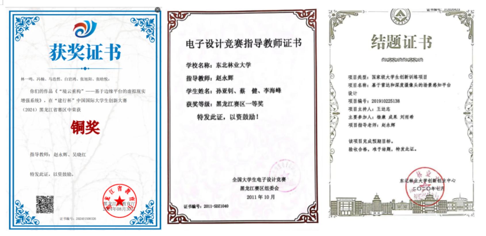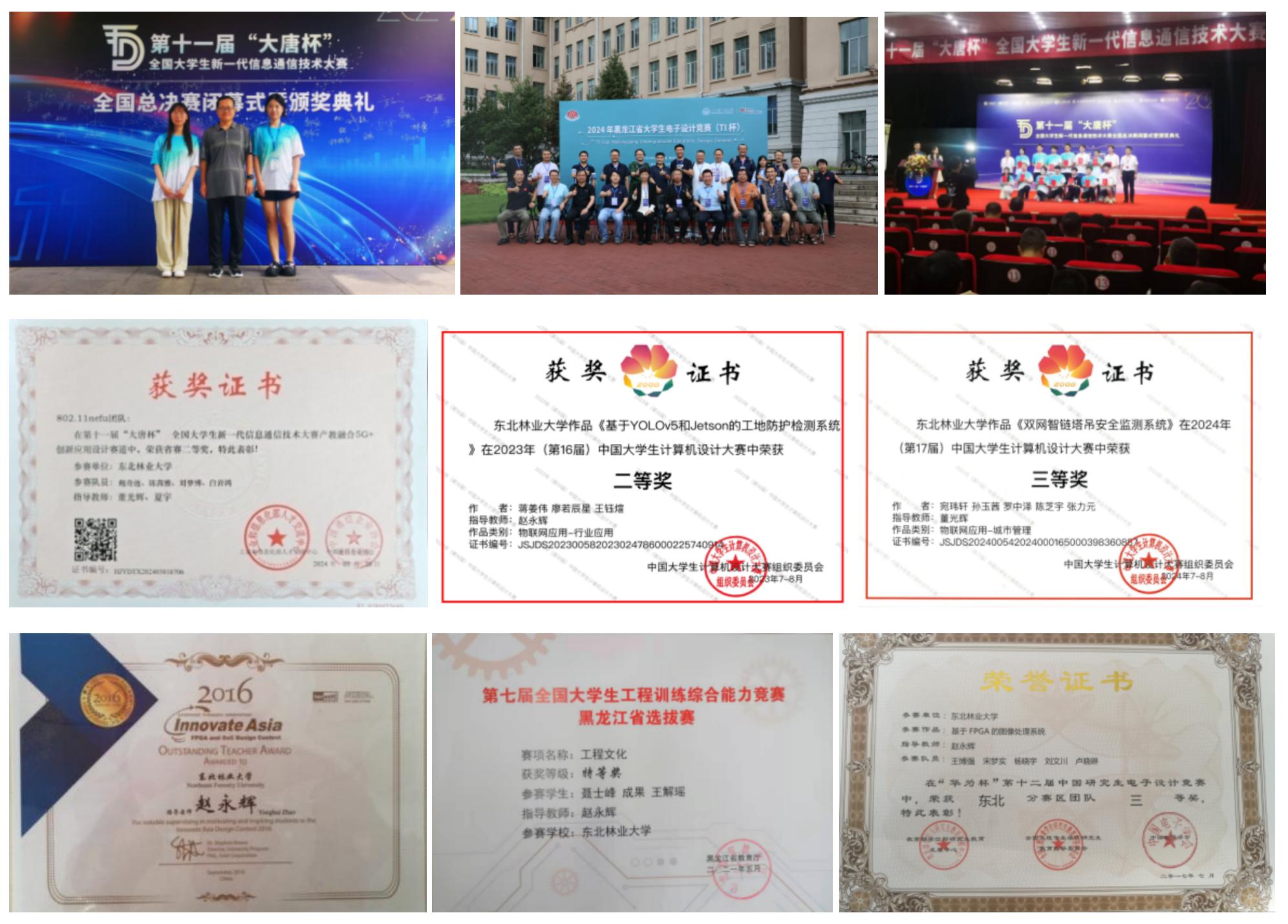 在电子信息工程、通信工程两个黑龙江省级一流专业支撑下,依据工程认证体系对复杂系统设计的要求,以大学生创新创业项目及科技竞赛为抓手,全面组织学生参与各类科技竞赛,竞赛类别包括中国大学生国际创新大赛、大学生电子设计竞赛,全国大学生集成电路创新创业大赛、iCAN大学生创新创业大赛、蓝桥杯、中国机器人及人工智能大赛、大唐杯、机器人开发者大赛、中国大学生计算机设计大赛、挑战杯中国大学生创业计划竞赛等20多项比赛。按人次数计算参与率,电子信息工程、通信工程两个专业本科生竞赛参与率超过60%,近5年,累计获批大学生创新创业项目及各类科技竞赛获奖200余项。